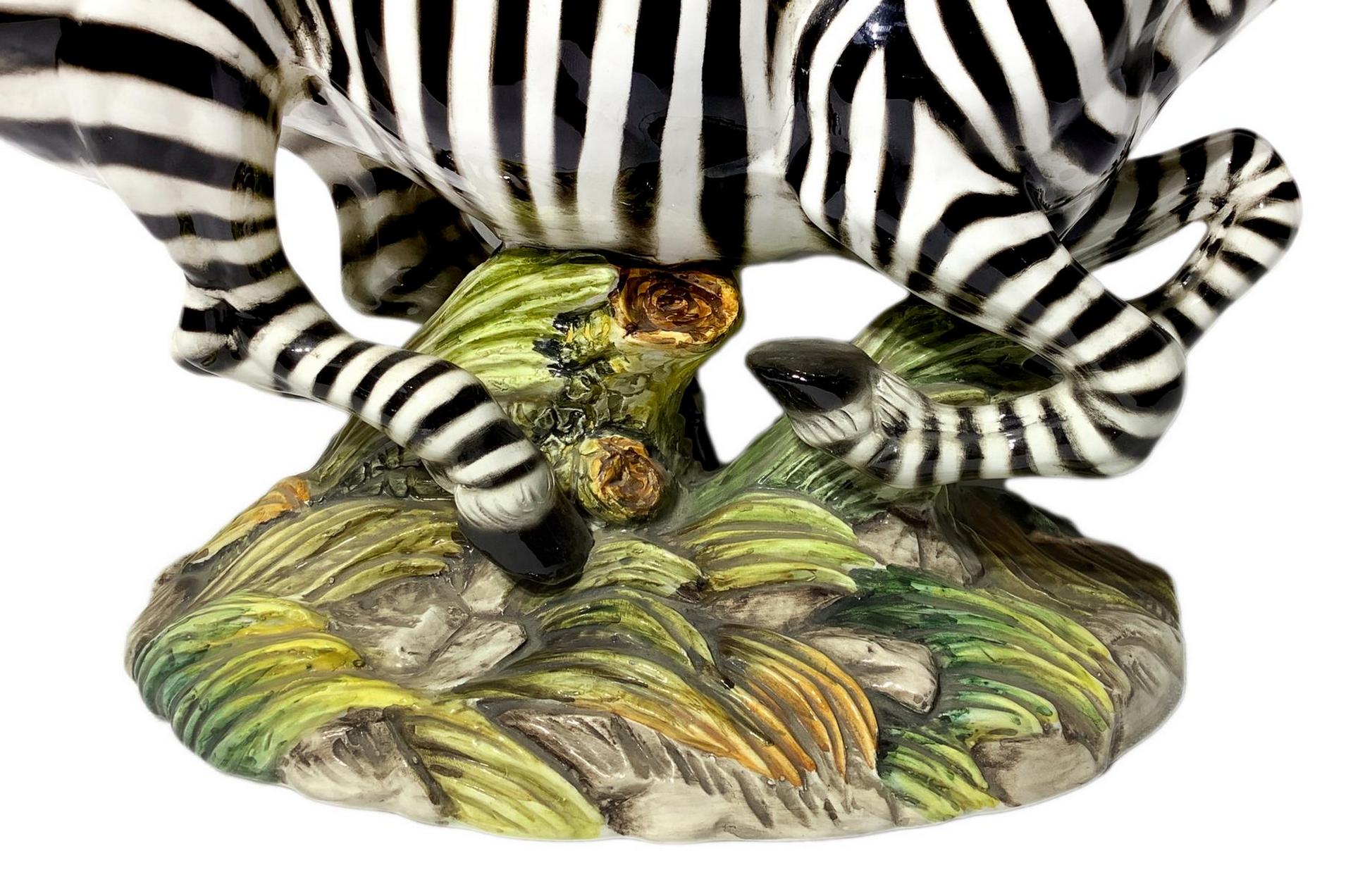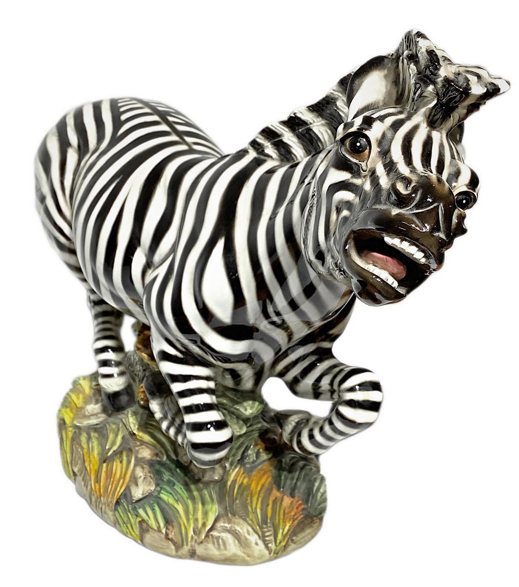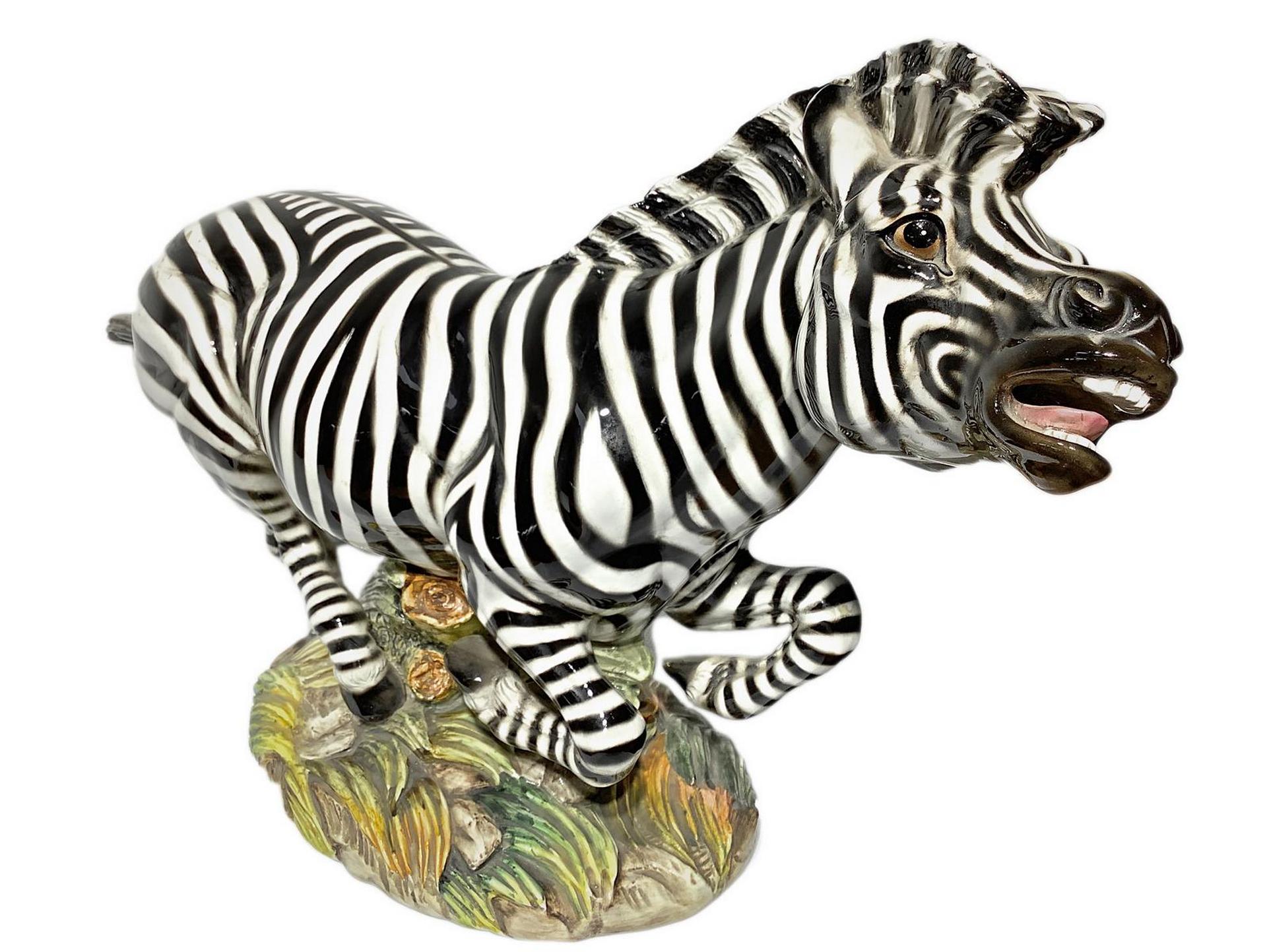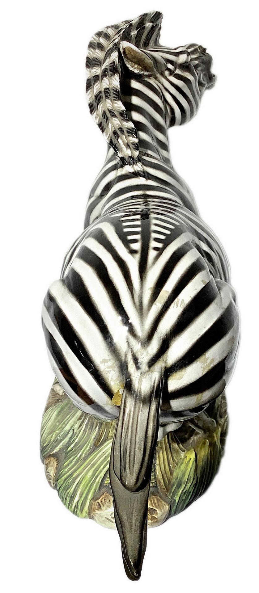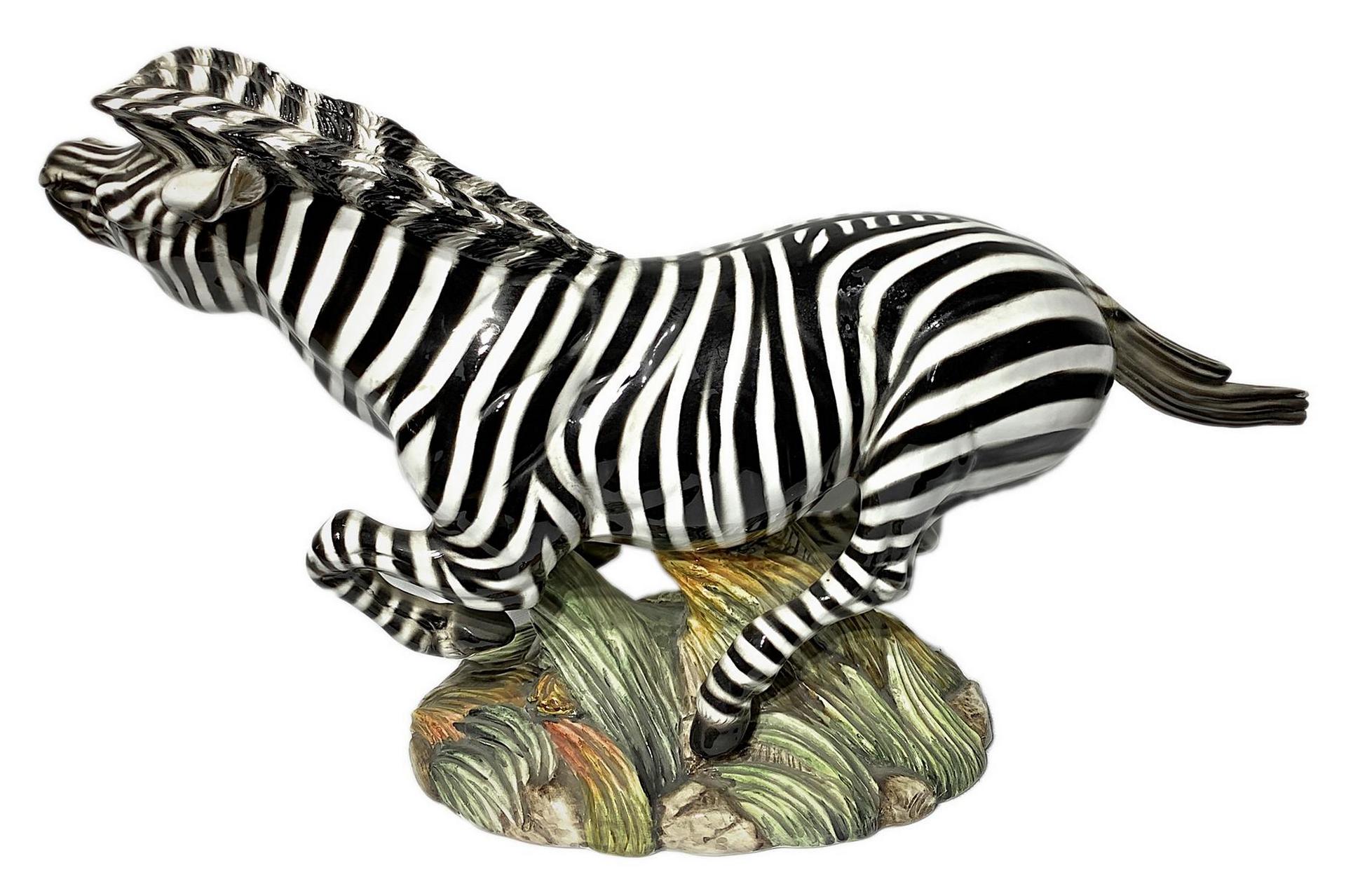 Ronzan, scultura in terraglia raffigurante Zebra. H cm 30. Lunghezza cm 54.