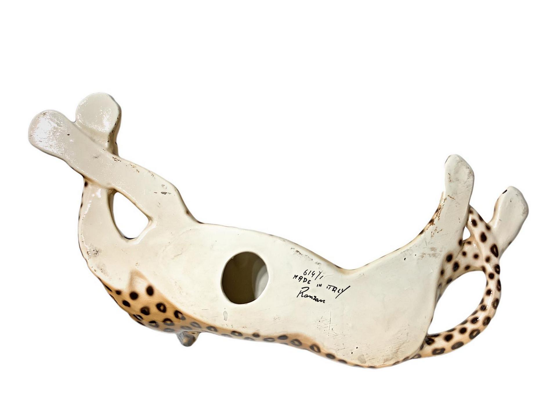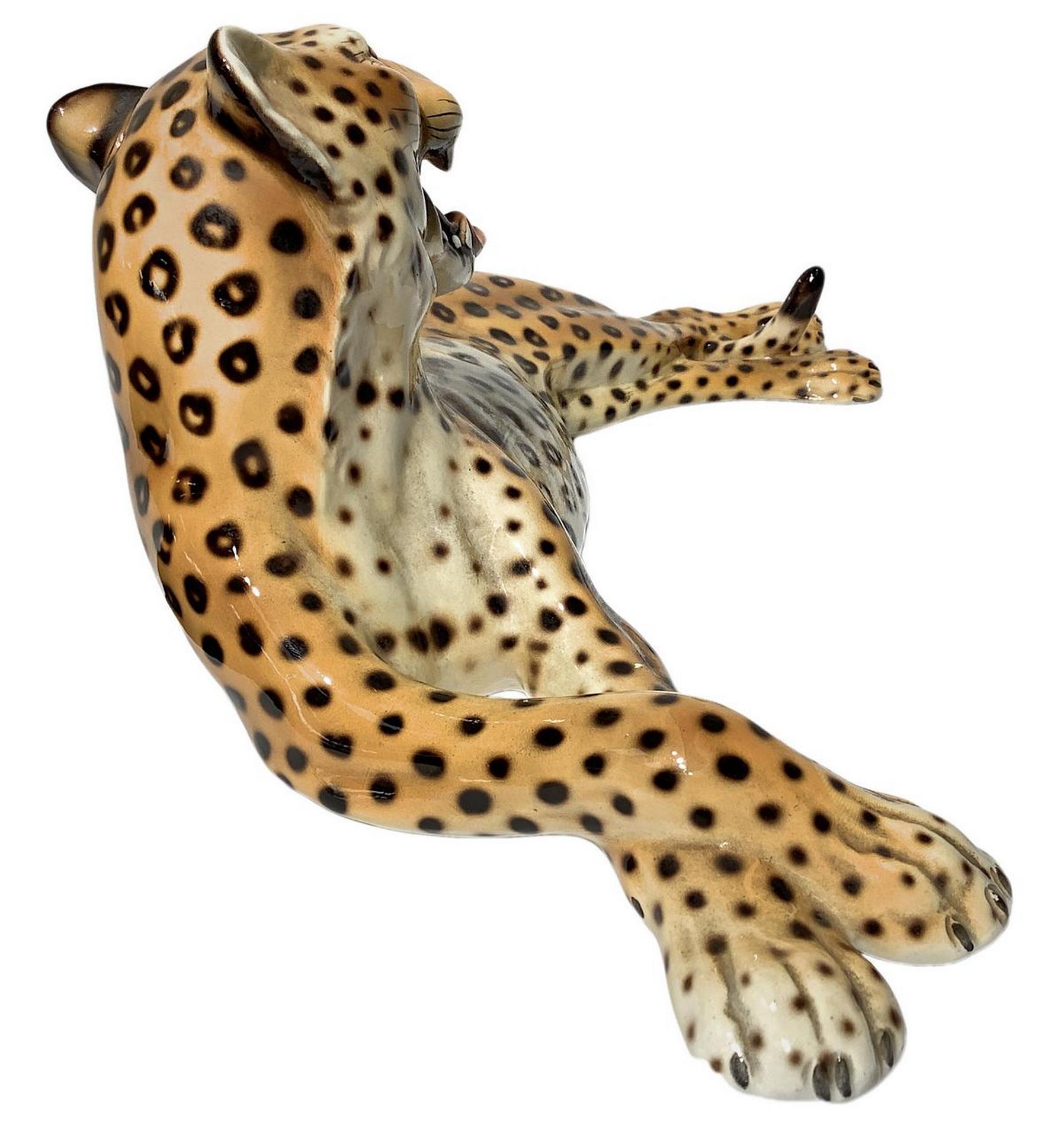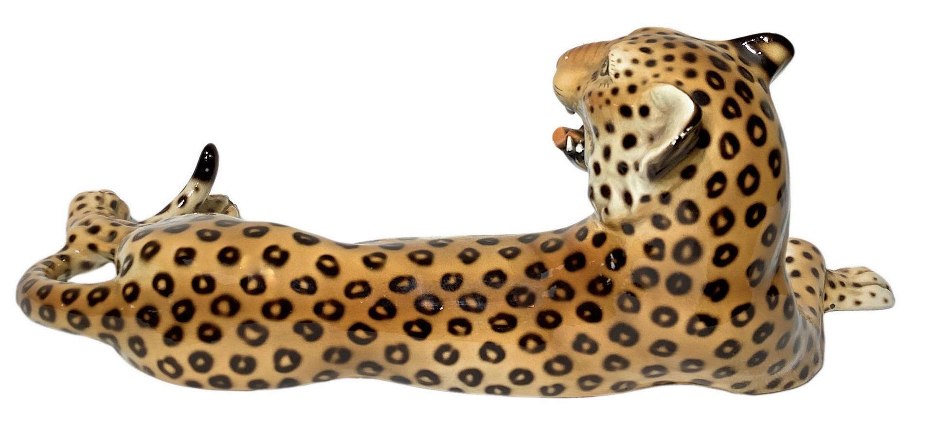 Lotto 535 | Ronzan, scultura in terraglia raffigurante Leopardo. H cm 15. Lunghezza cm 40.