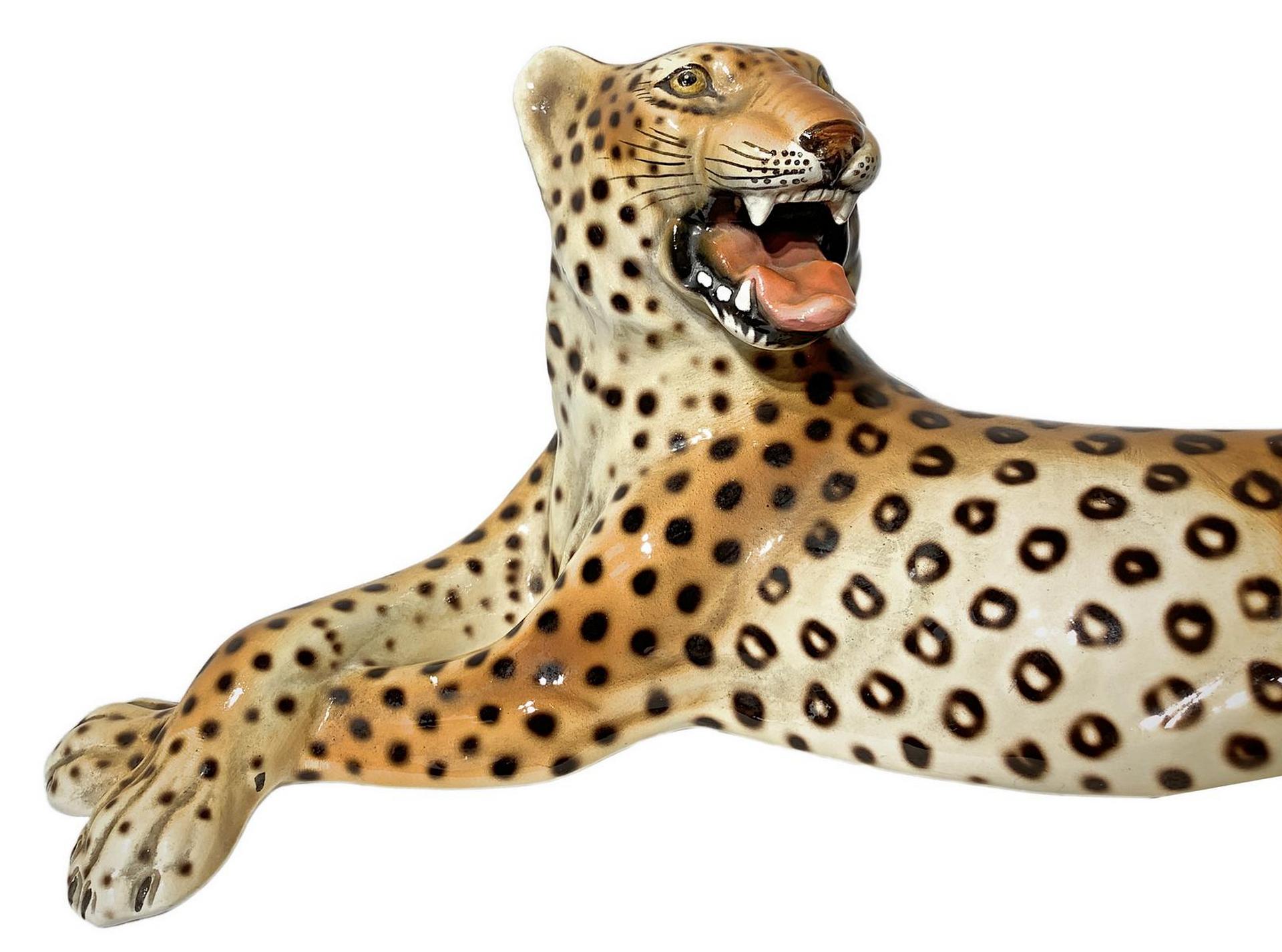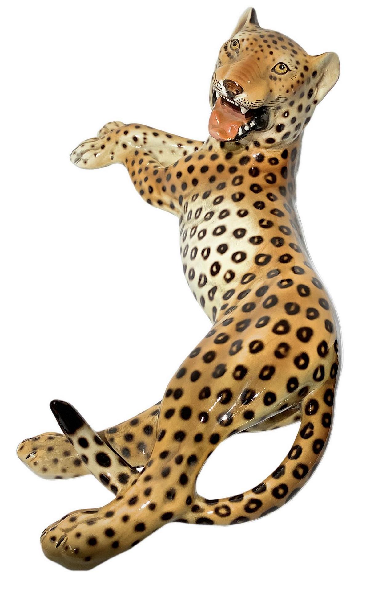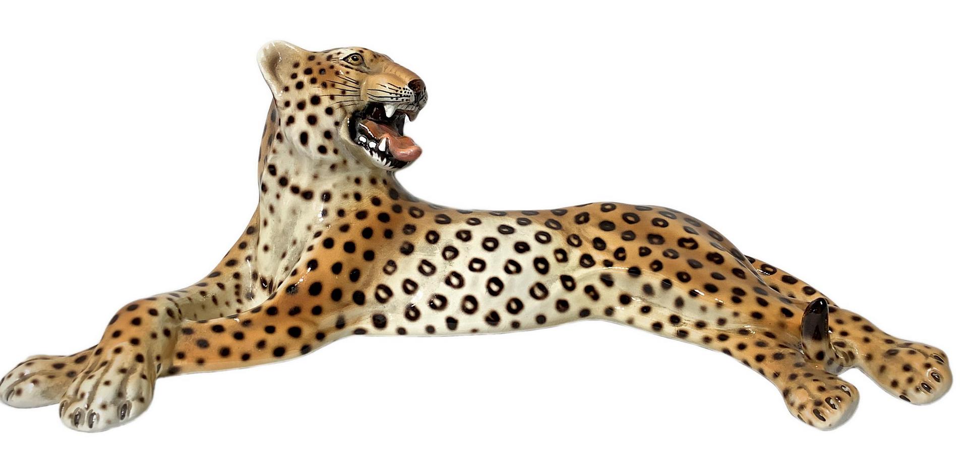Lotto 535 | Ronzan, scultura in terraglia raffigurante Leopardo. H cm 15. Lunghezza cm 40.