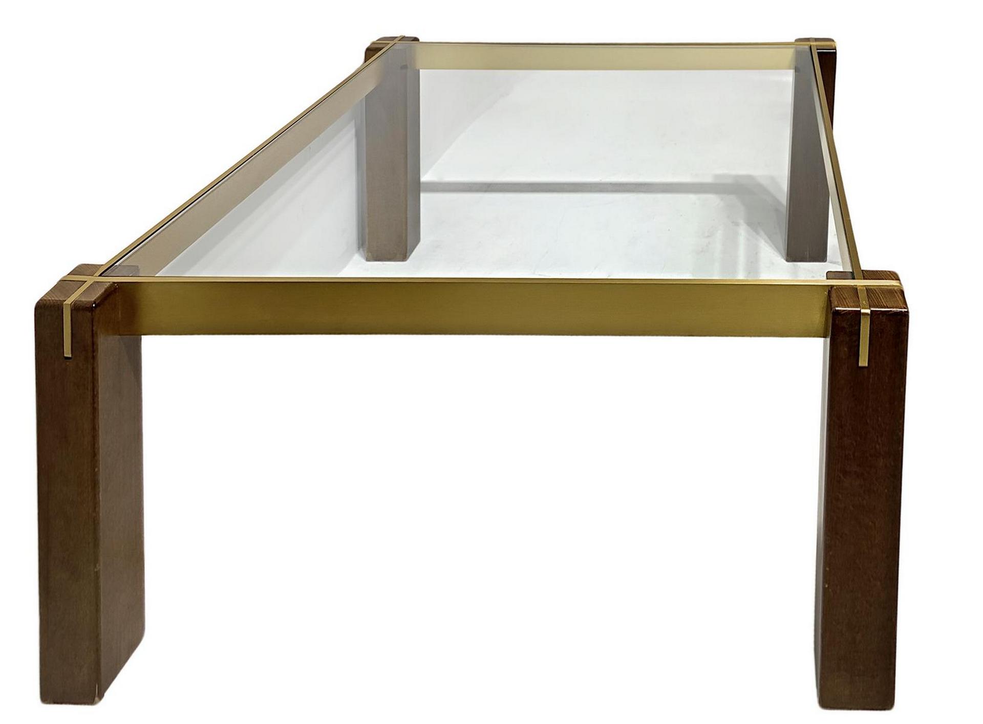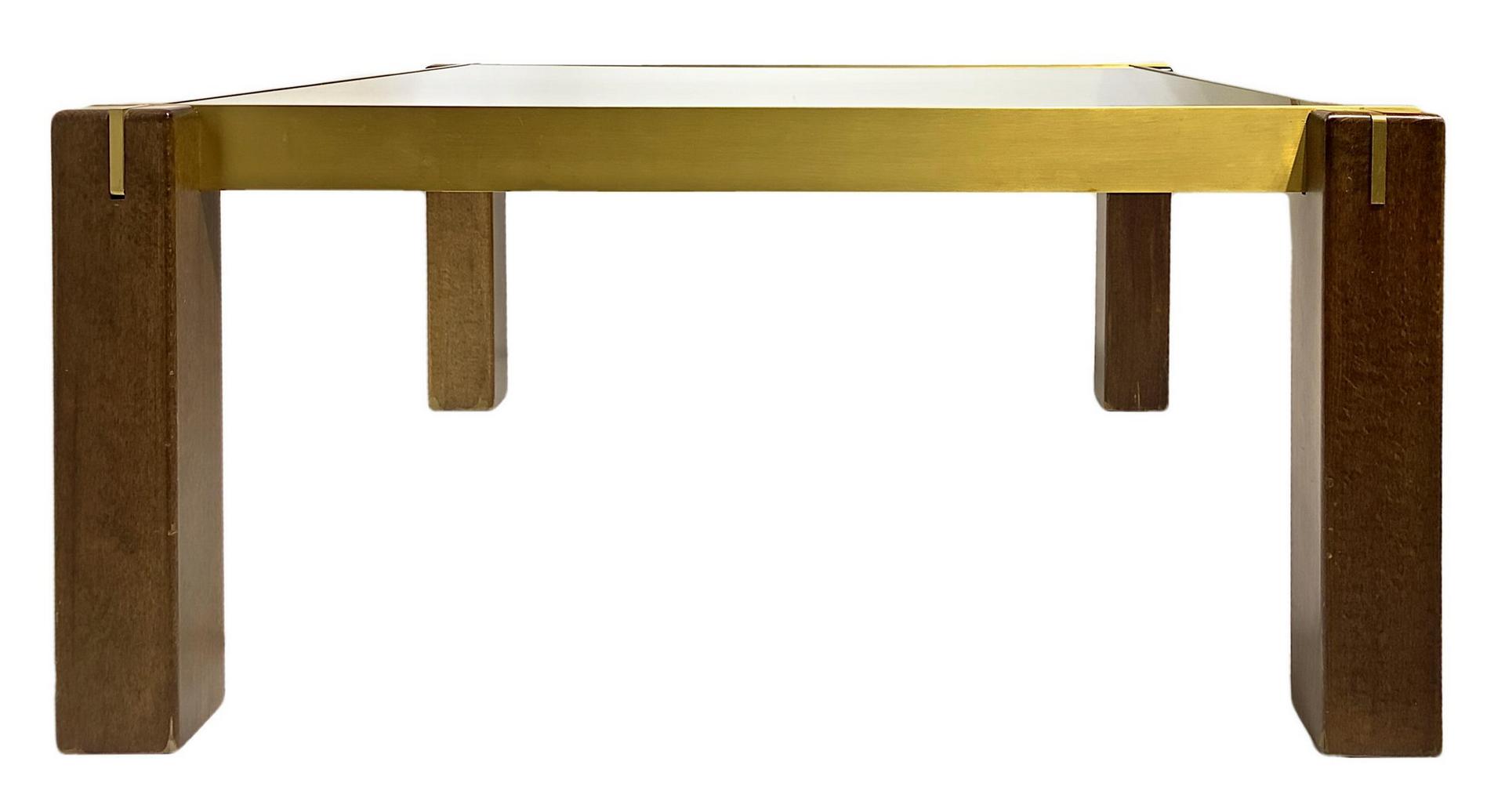 Tavolino basso produzione skipper disegno Renato Polidori, piedi in legno e vetro al piano. Cm 78x78