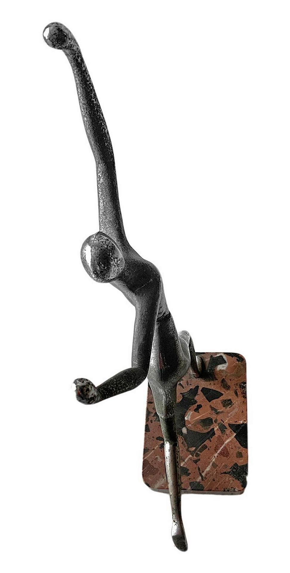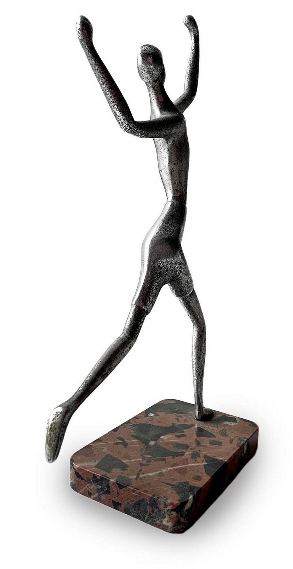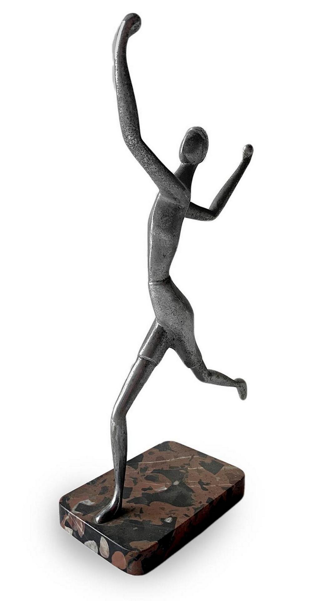 Scultura in metallo cromato raffigurante atleta stilizzato, produzione...