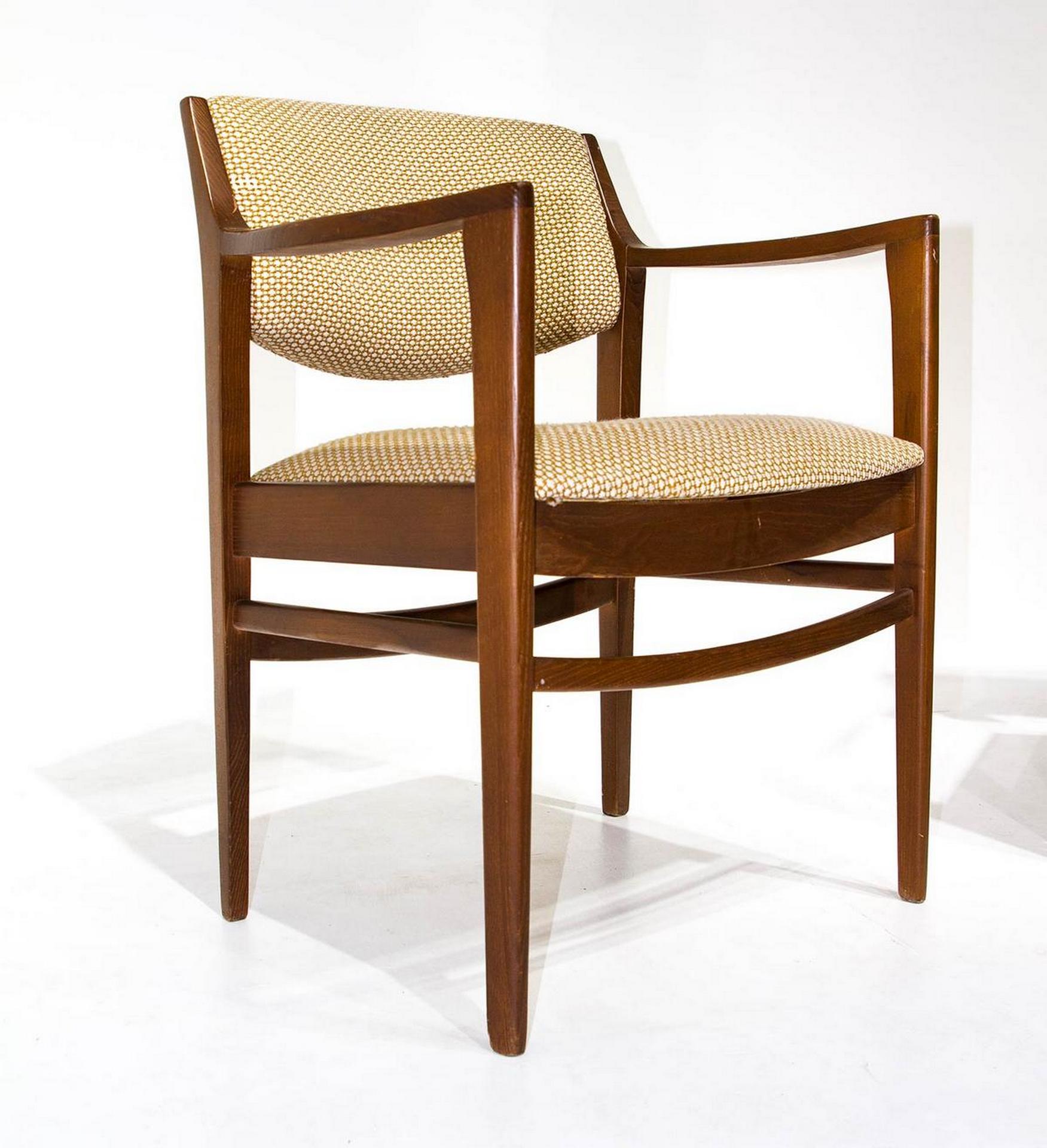 Coppia di poltroncine stile g. ponti anni 60 in legno di mogano con seduta rivestita in tessuto. Cm 73x58x45