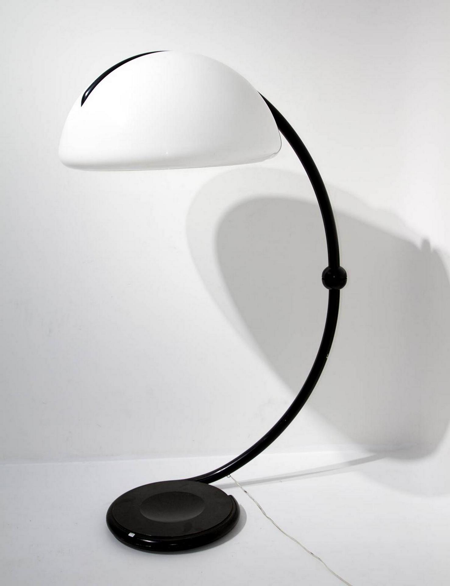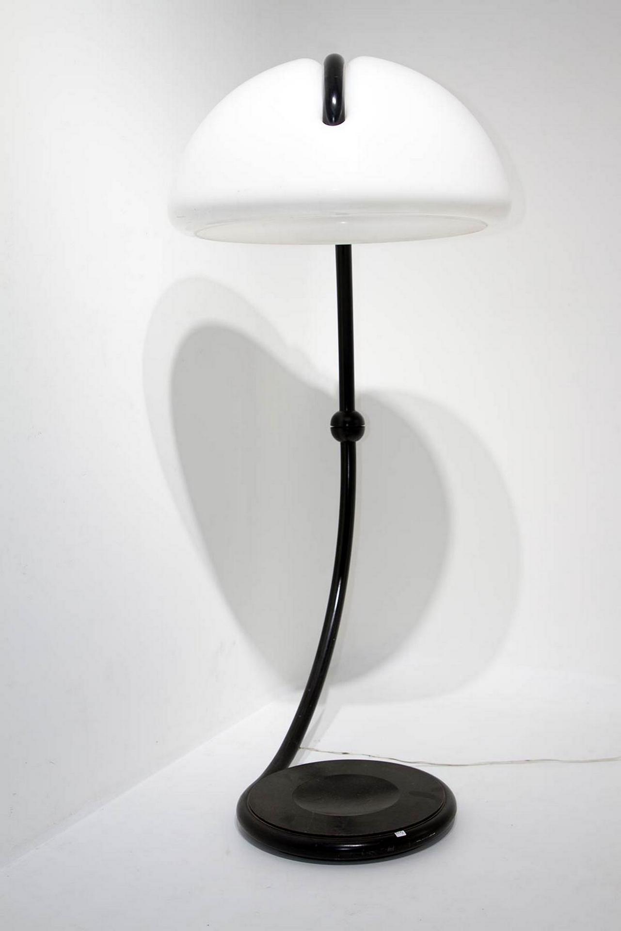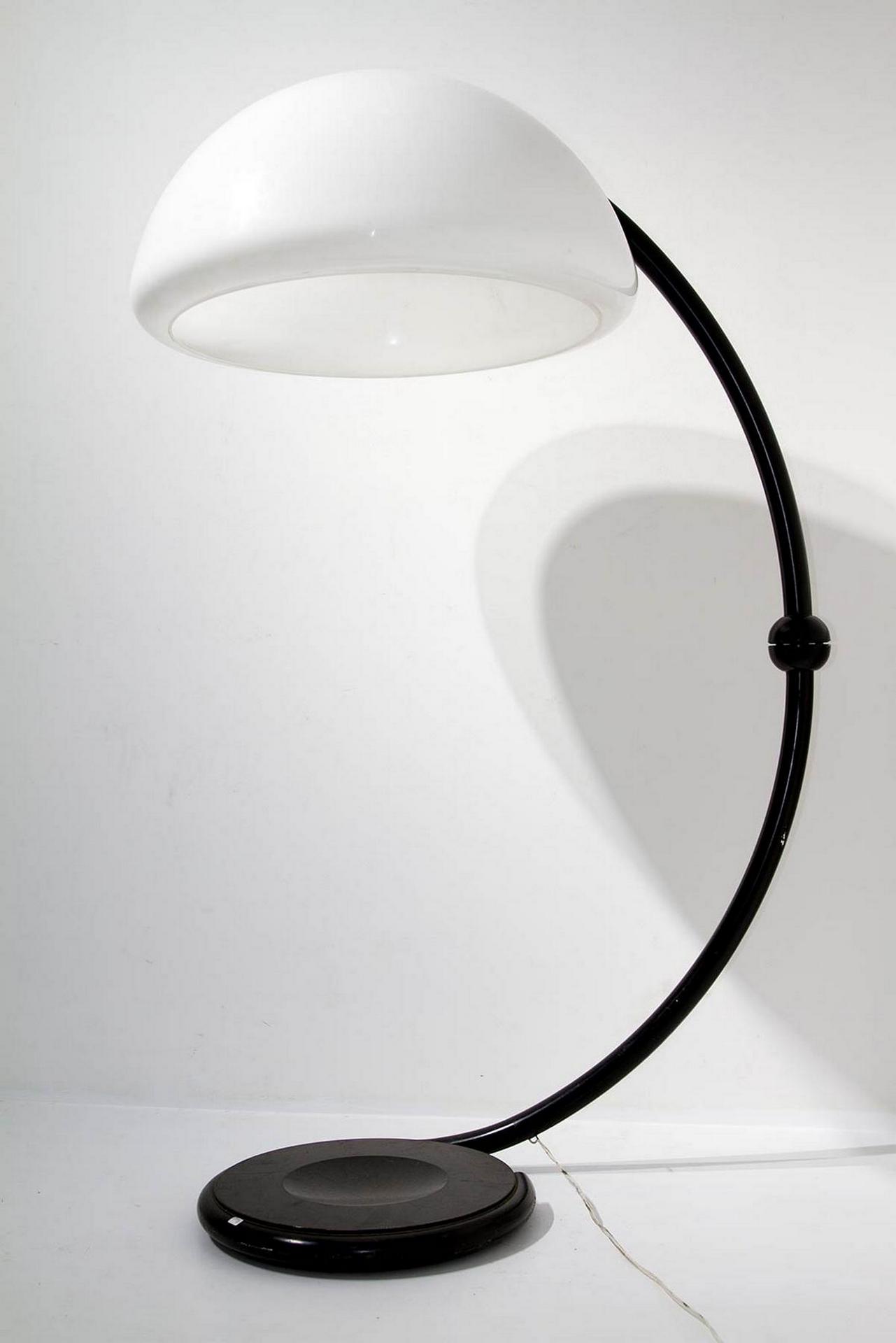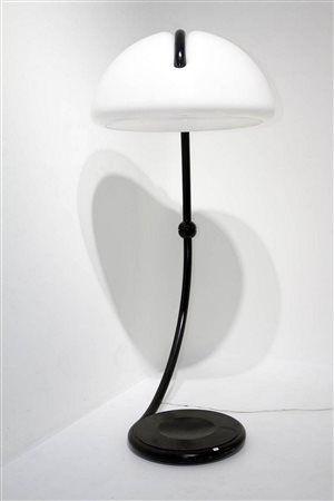 Lampada da terra, Martinelli, struttura in metallo laccato nero , diffusore in plexi. Mod. Cobra. Cenni di uso sul diffusore. H cm 125 x 140