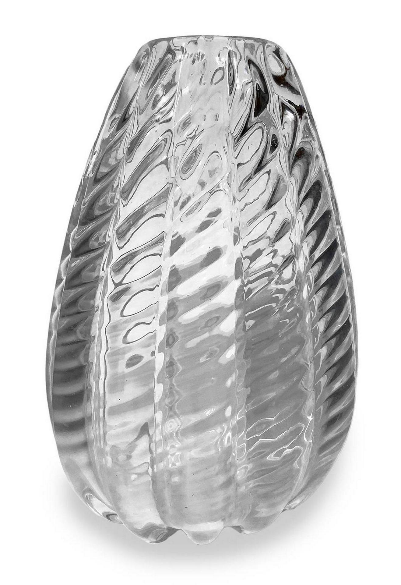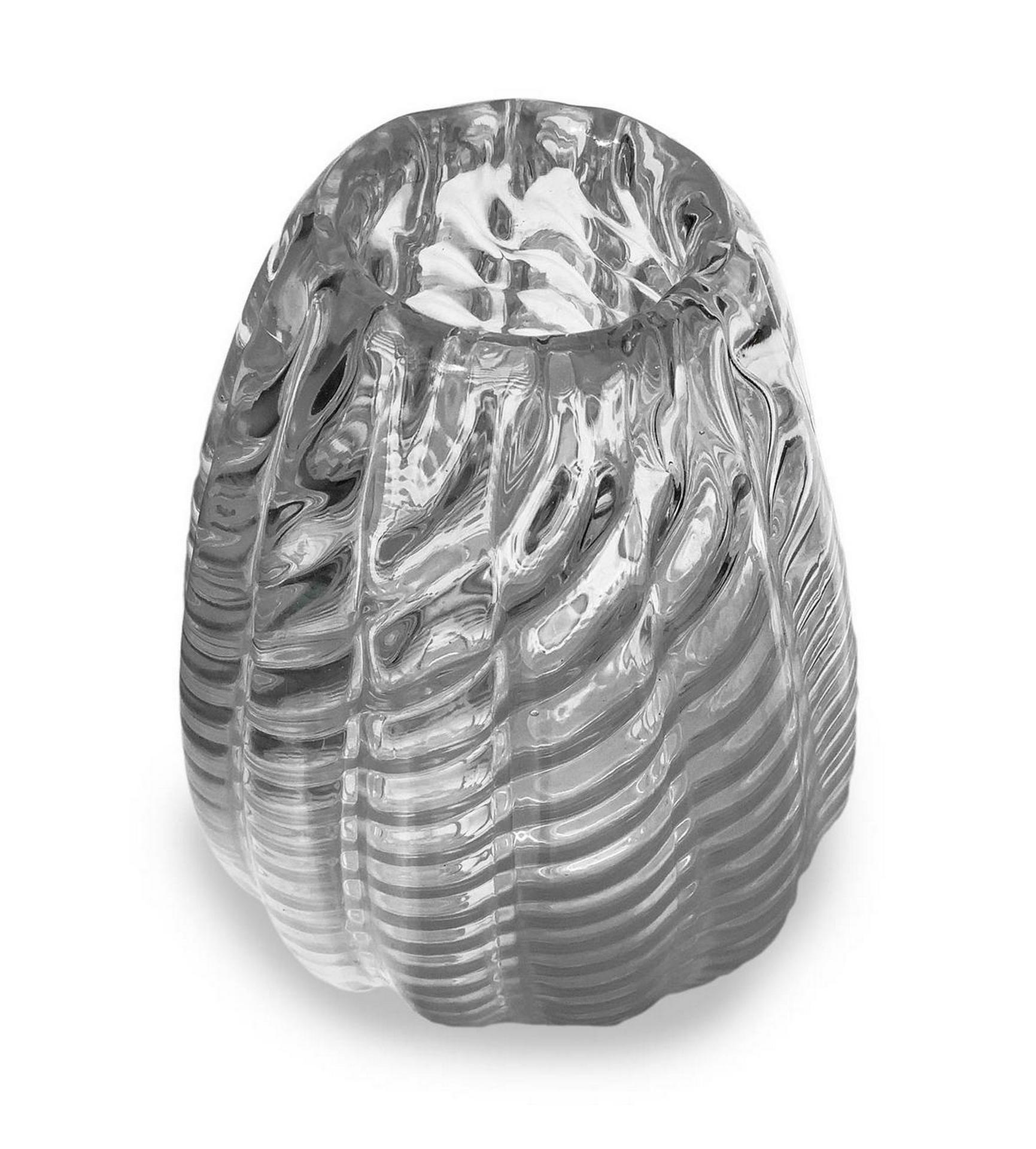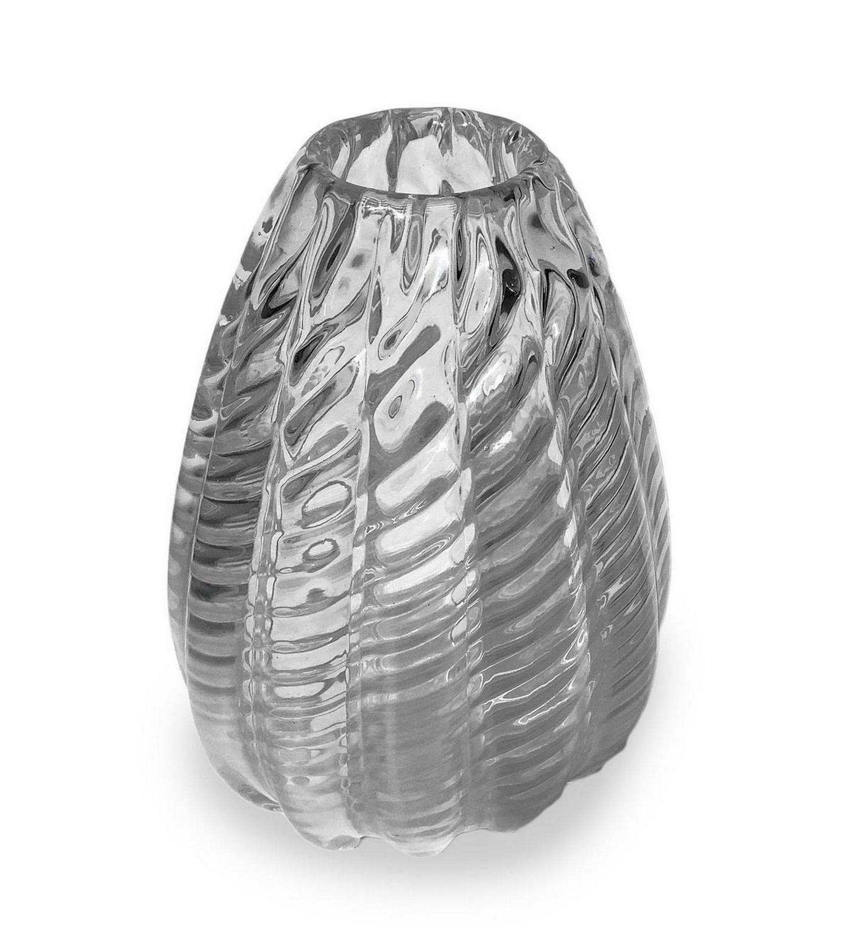 Vaso in vetro trasparente superficie con lavorazione costolata e cordonata,...