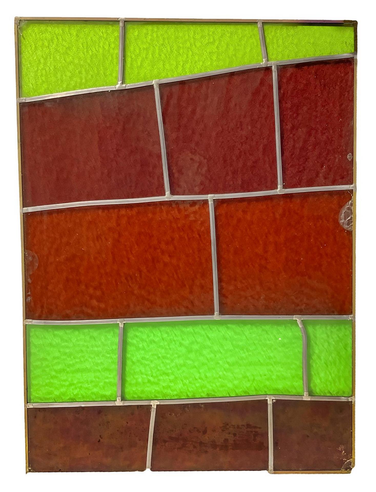 Lotto 644 | Vetrata a piombo con vetri cattedrale decorata. H cm 91x67