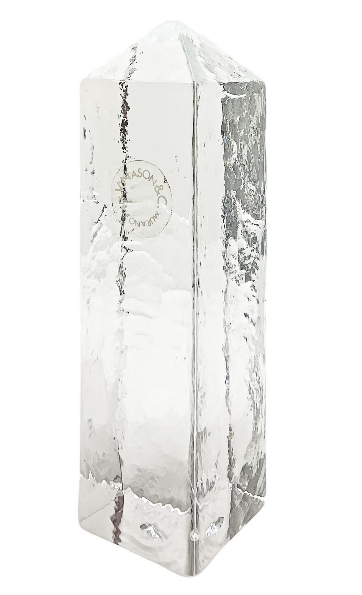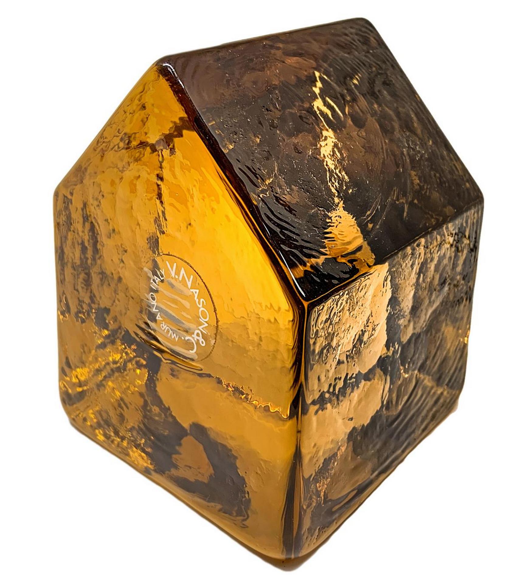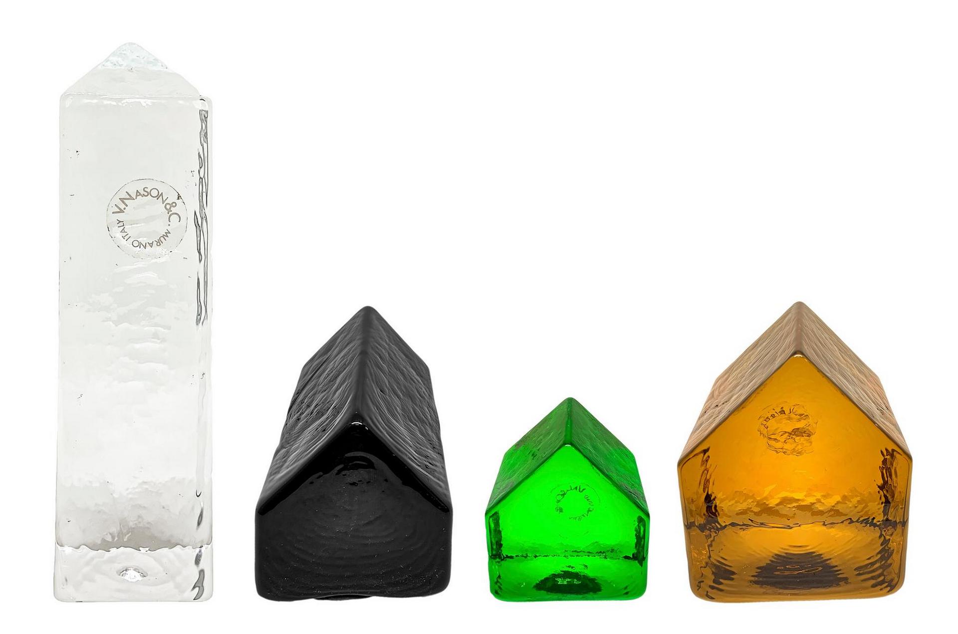 Gruppo n.4 fermacarte in vetro ghiacciato raffiguranti piccoli edifici stilizzati, V.Nason & Co., Murano, Italy, XX secolo.