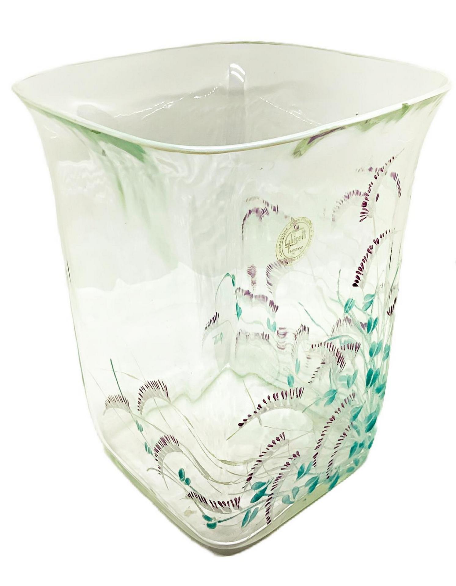 Lotto 660 | Vaso in vetro trasparente di forma rettangolare con decori floreali. Lieve...