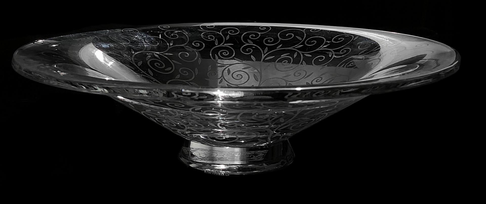 Lotto 666 | Piccola alzata in vetro trasparente con decoro floreale bianco, Baccarat....
