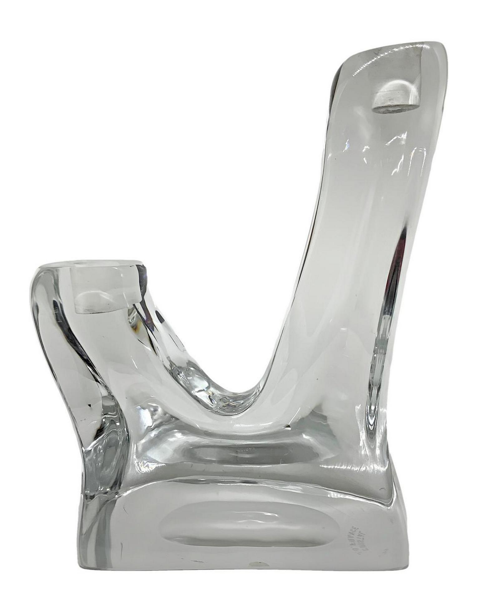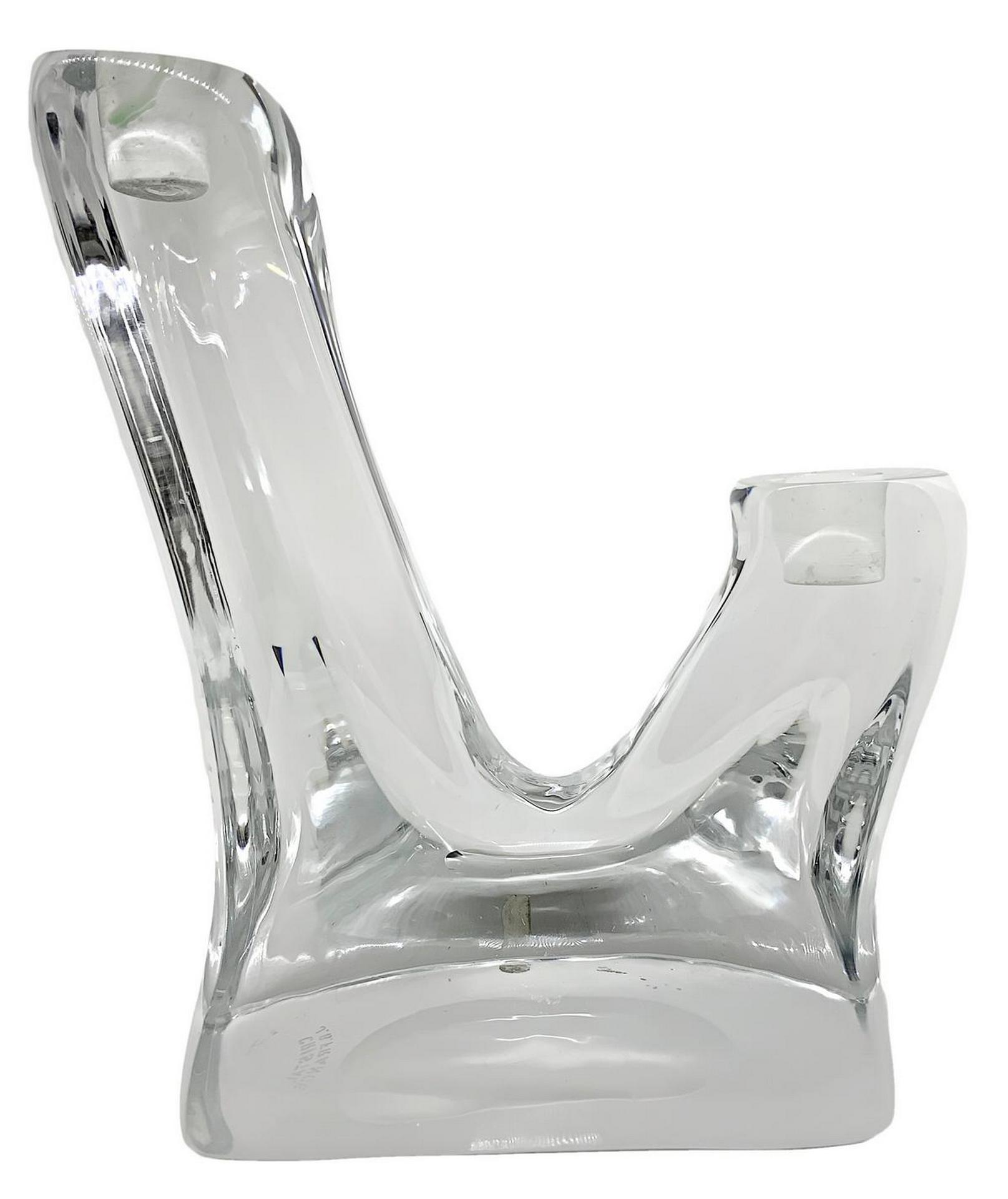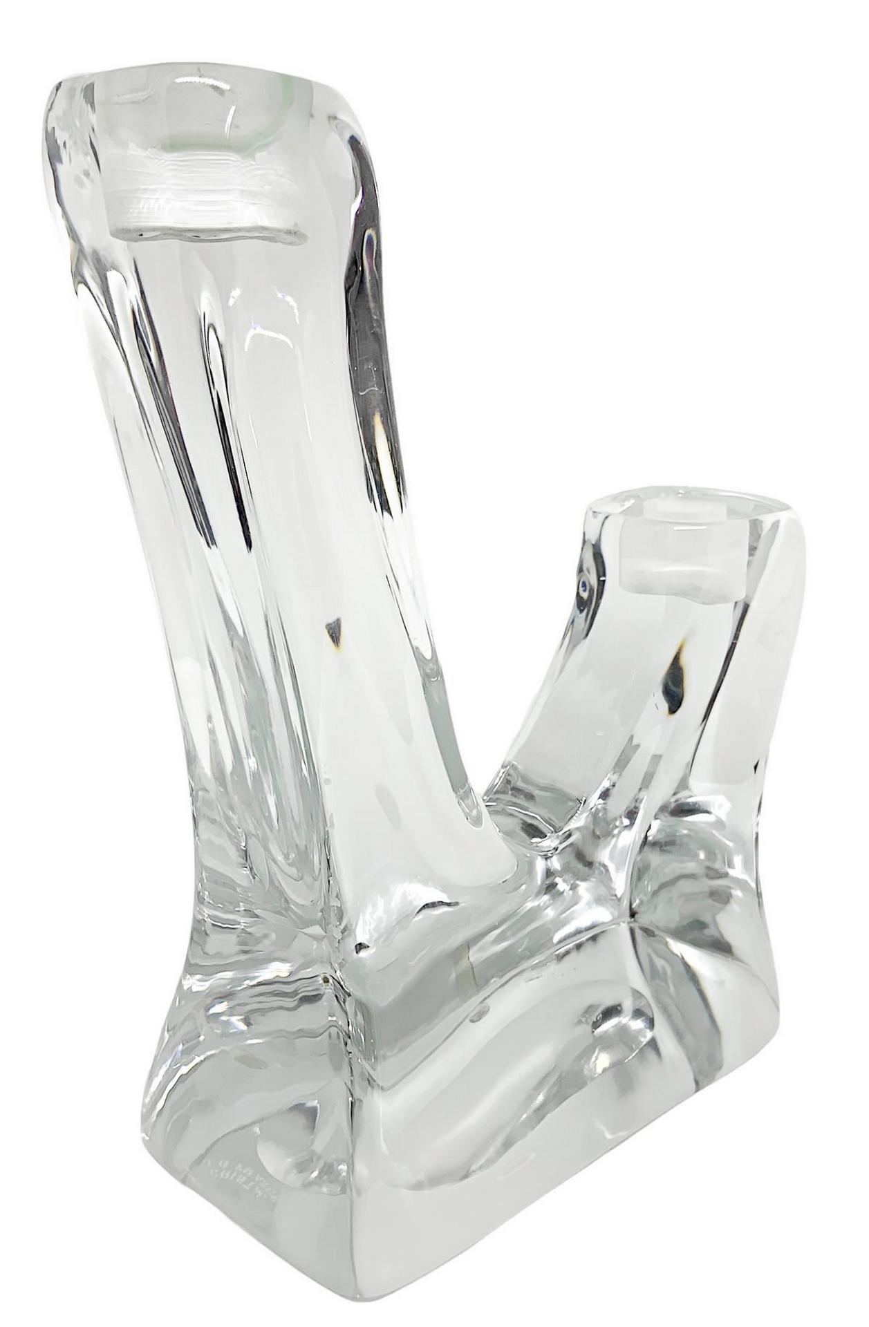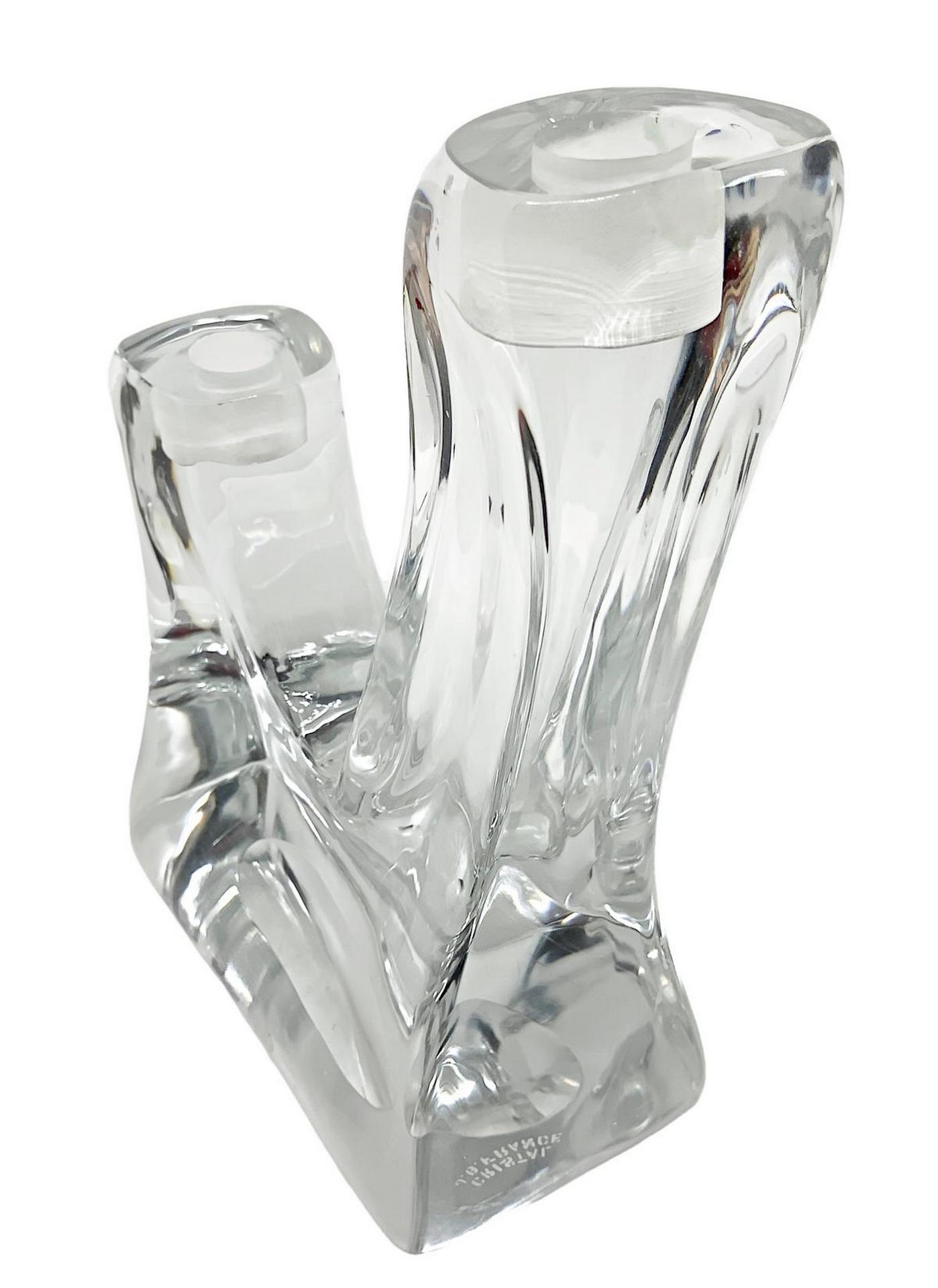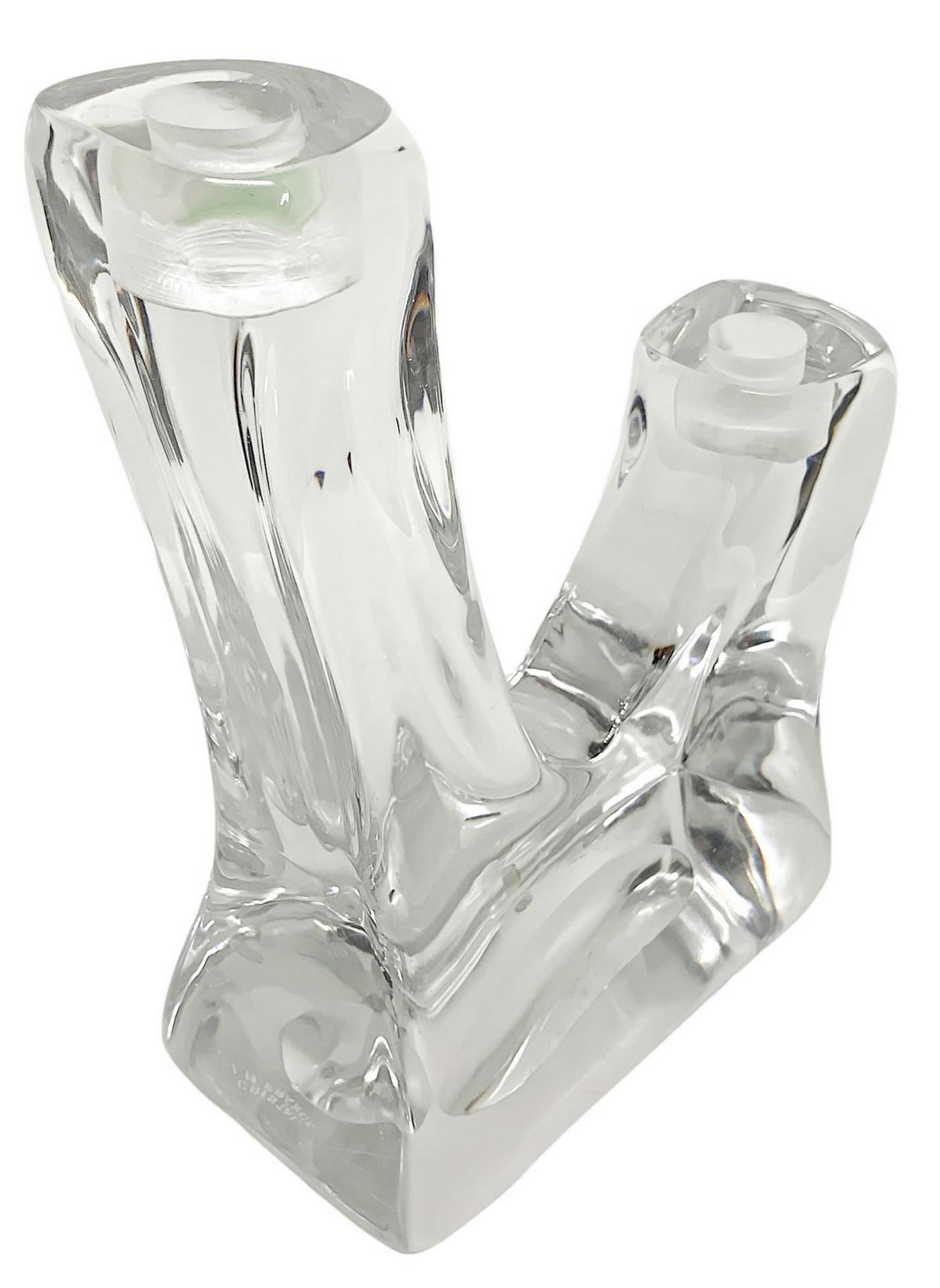 Candelabro in cristallo pesante di gusto informale, firmato Cristal G.B. France, XX secolo. A due luci. H cm 22 X cm 17