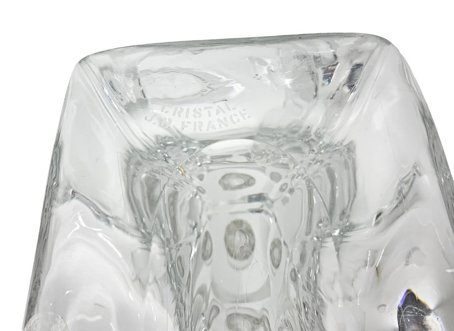 Candelabro in cristallo pesante di gusto informale, firmato Cristal G.B....