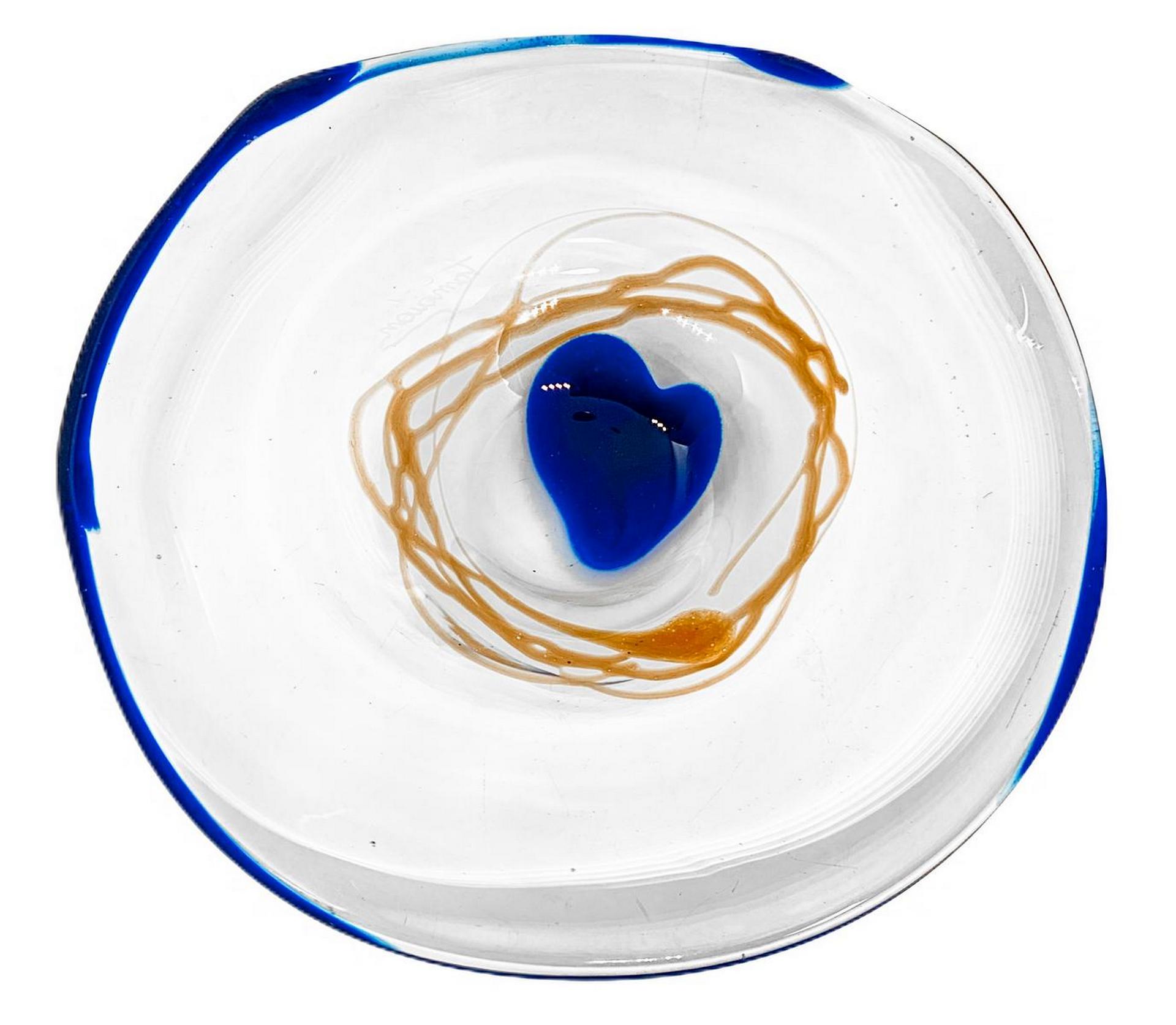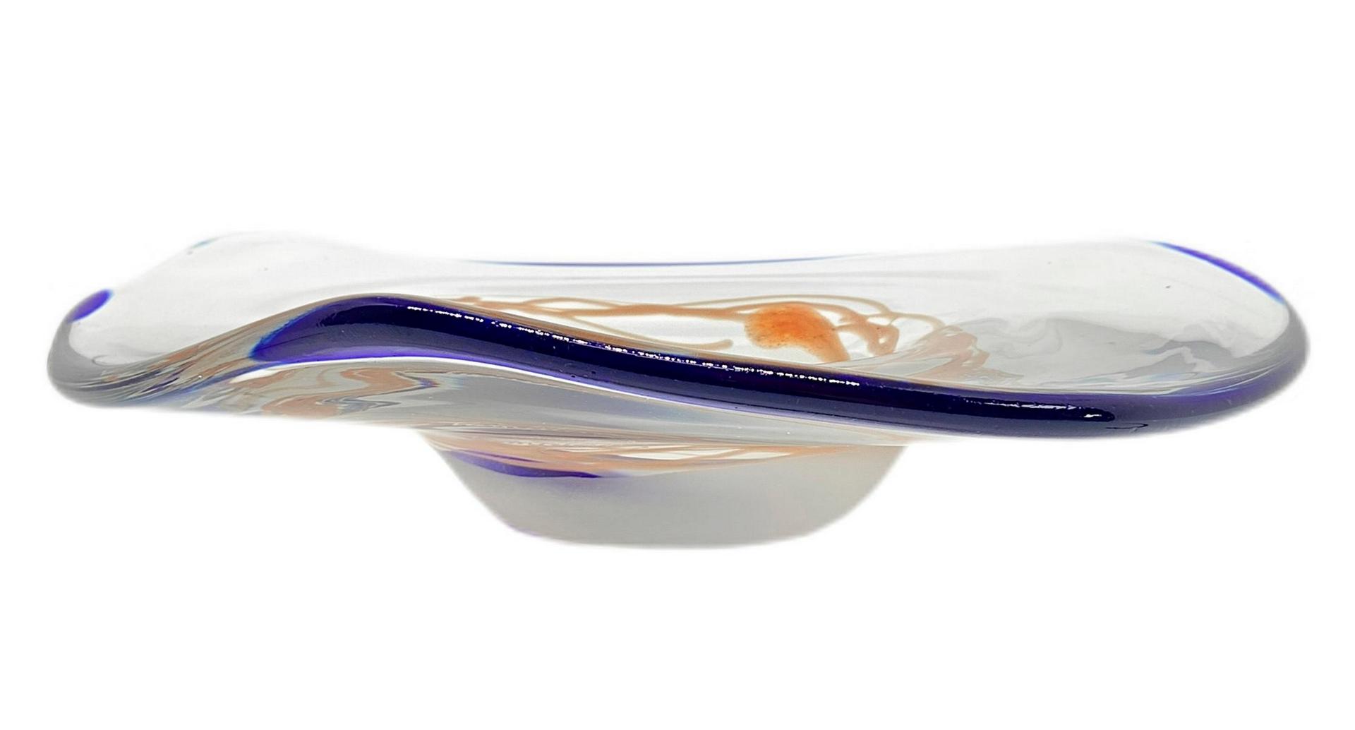 Piccolo centrotavola in vetro con striature nei toni del blu e marrone, Ioan Tamaian, Romania,