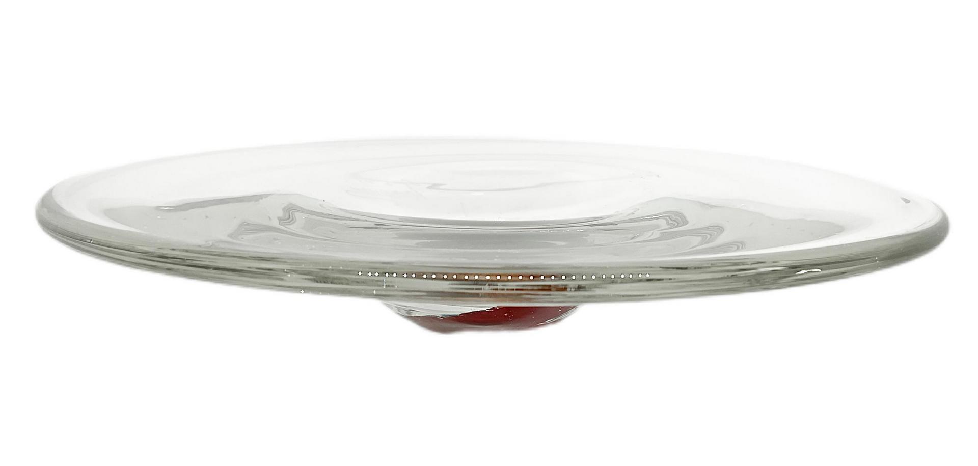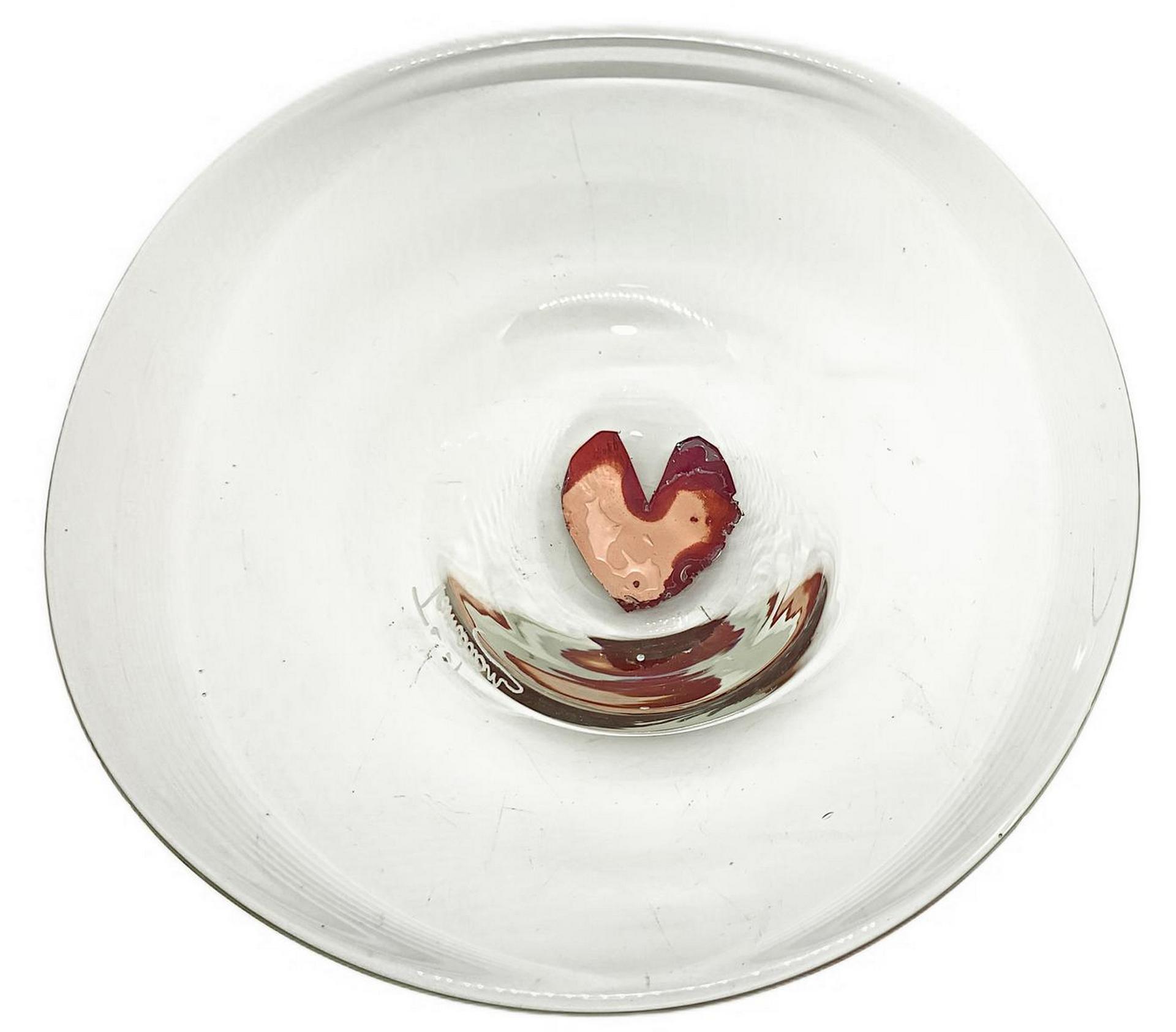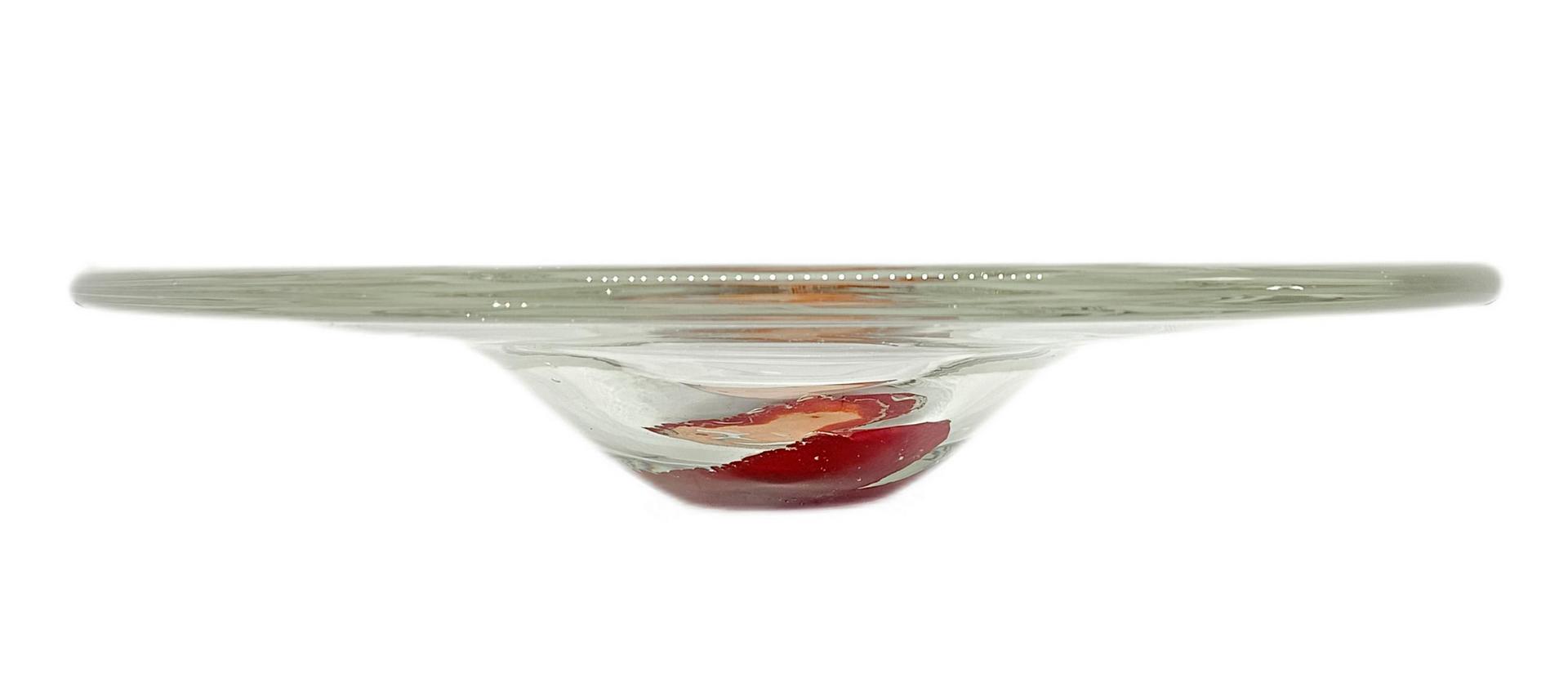 Piccolo centrotavola in vetro con striature nei toni del rosa, Ioan Tamaian, Romania,