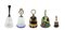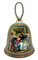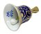 Gruppo di n. 5 campanelle. Una in cristallo H cm 15, una in vetro lattimo e presa in ottone cm 14. Una in porcellana raffigurante scene di genere H cm 12. Una in ceramica con rombi dorati e blu, h cm 13. Una blu e oro con decorazioni floreali, XX secolo. H cm 8