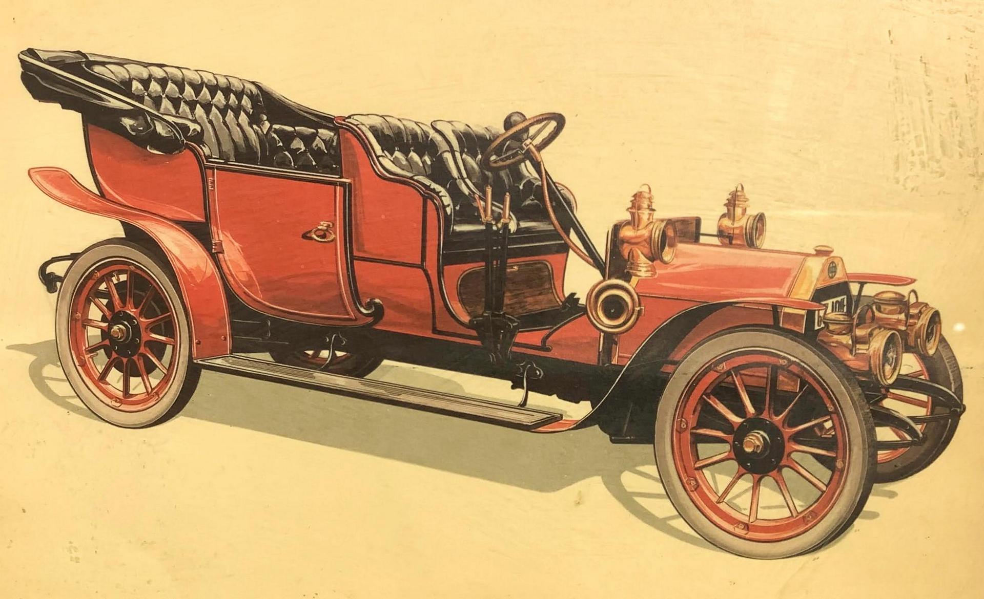 Tre stampe raffigurante macchine d’epoca. Cm 27x37. In cornice di legno...