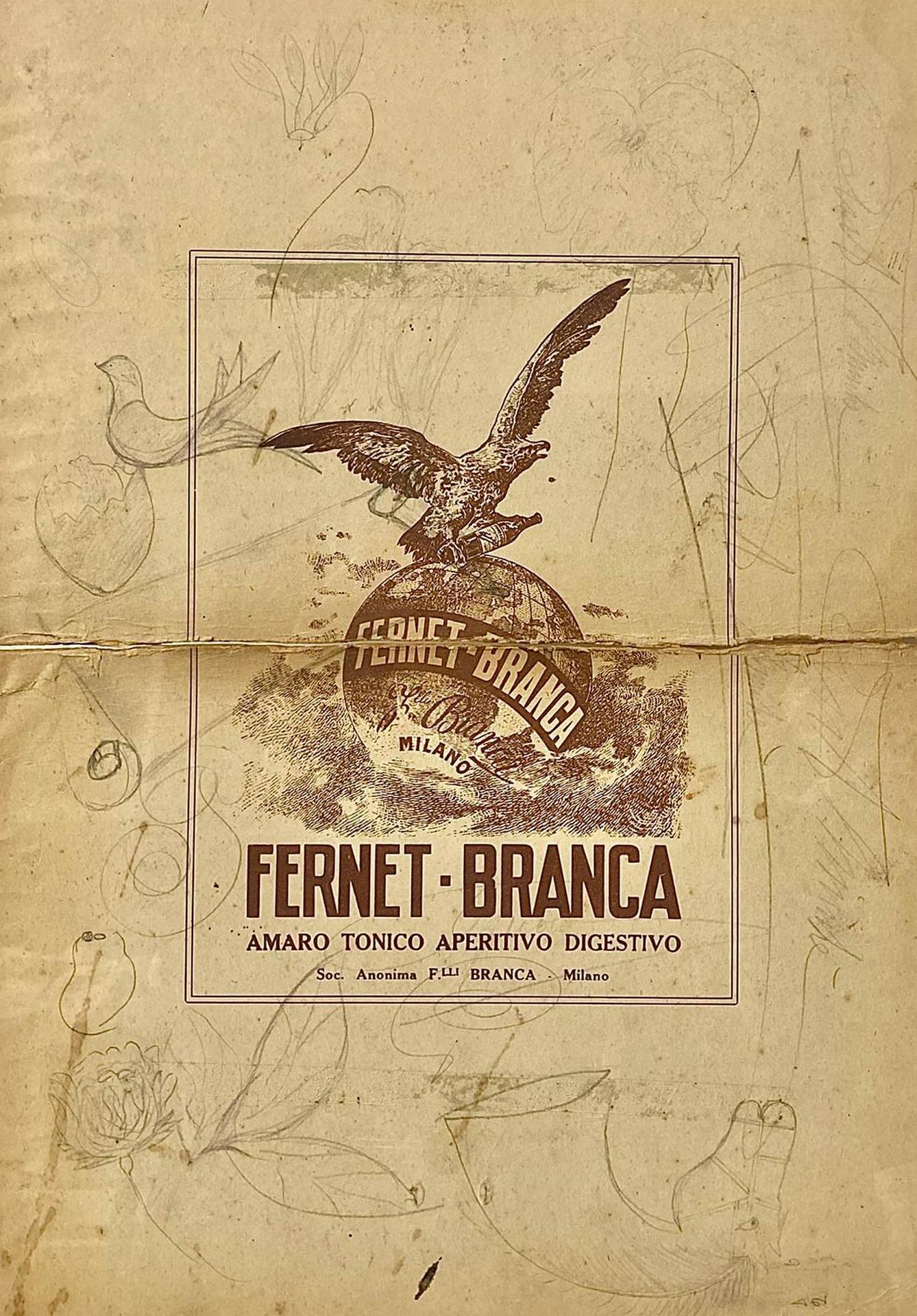 Fernet-Branca, cartoncino pubblicitario da supporto a calendario. Datato con...