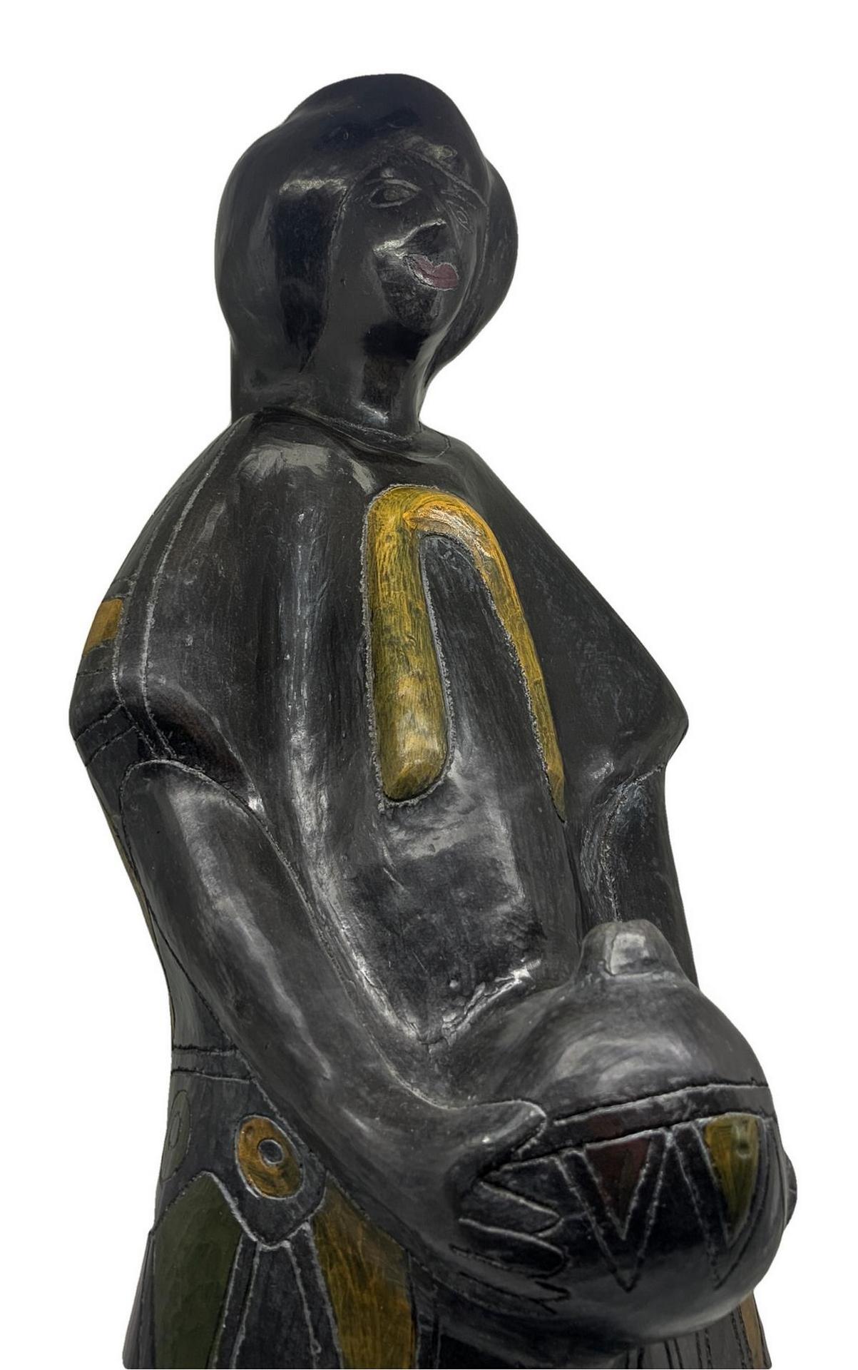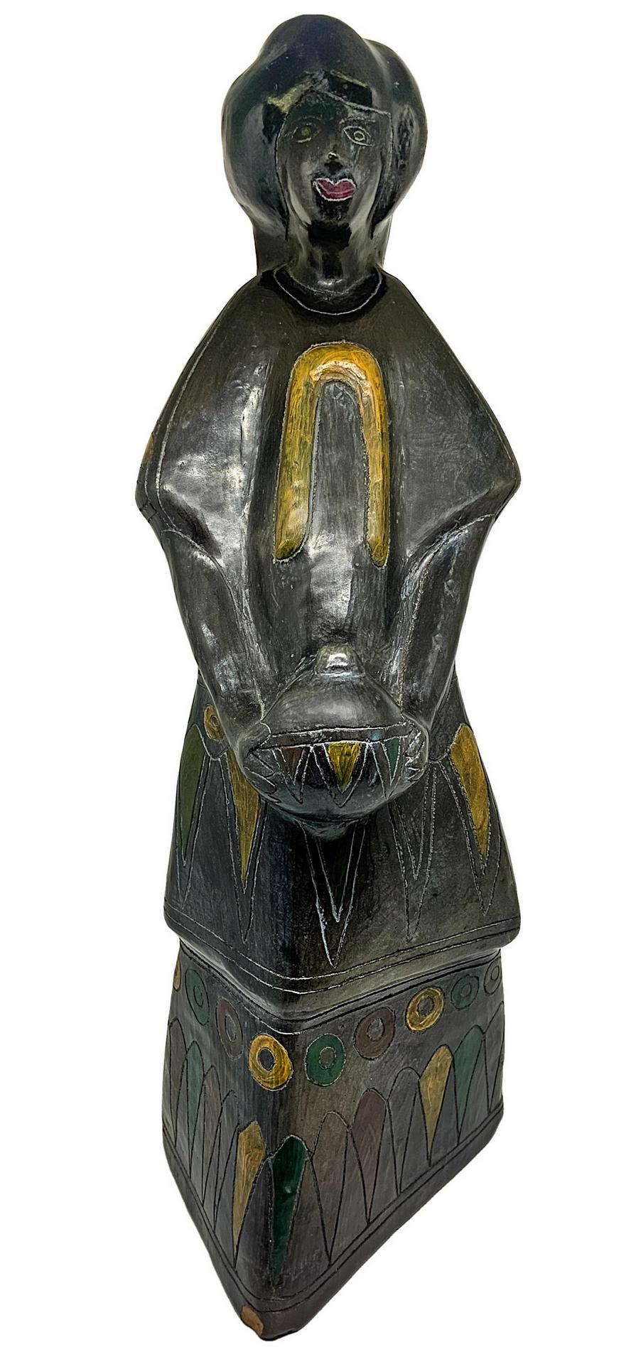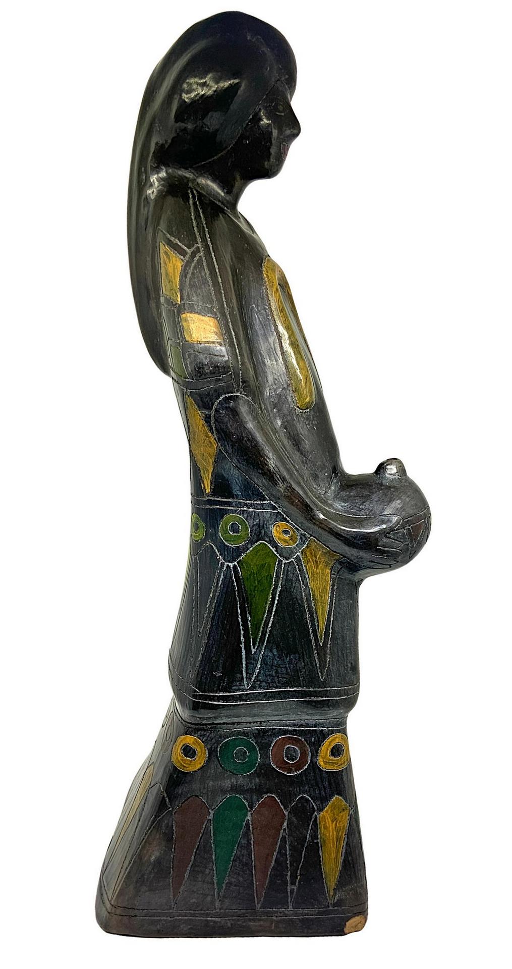 Scultura lignea policroma raffigurante donna messicana. H cm 42