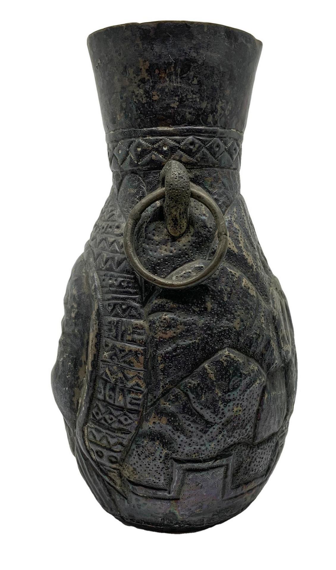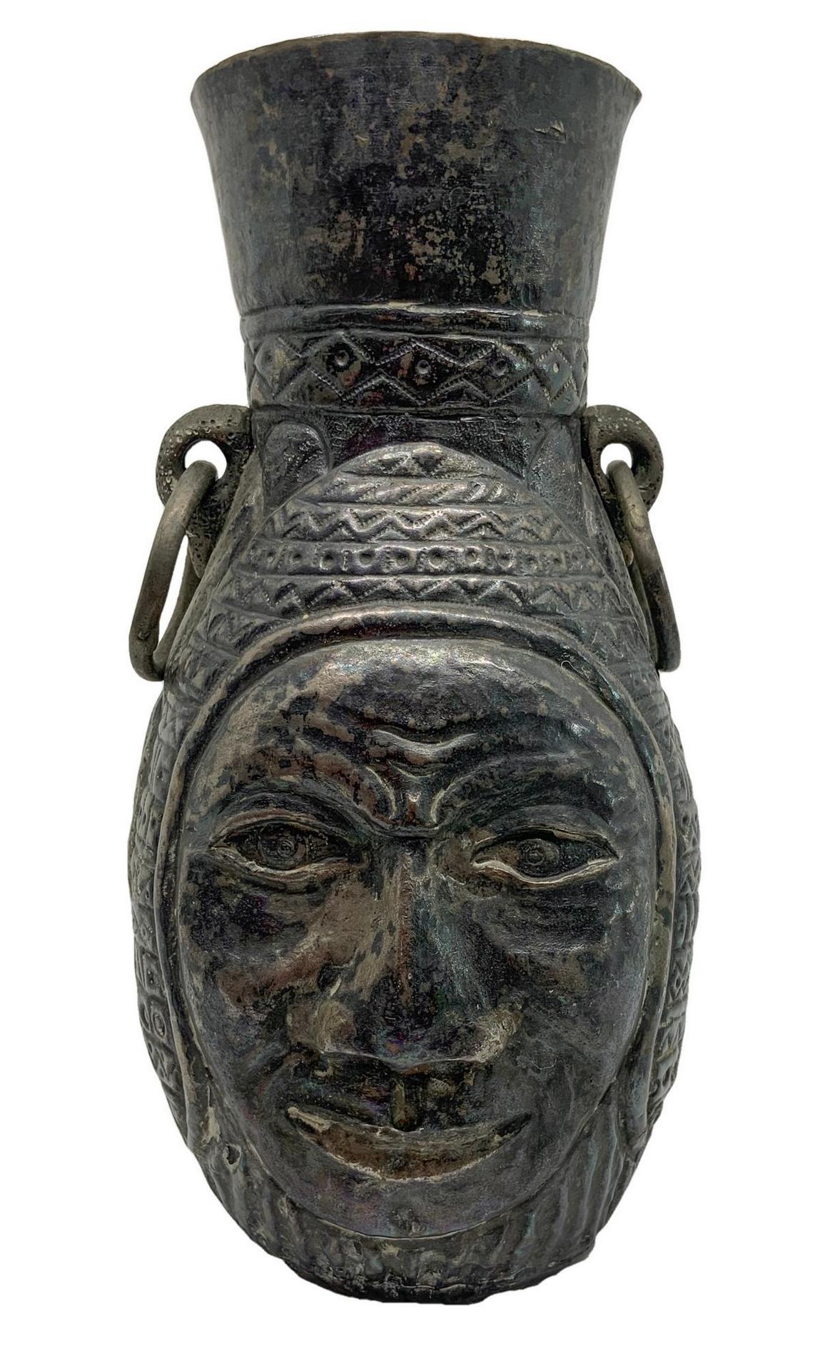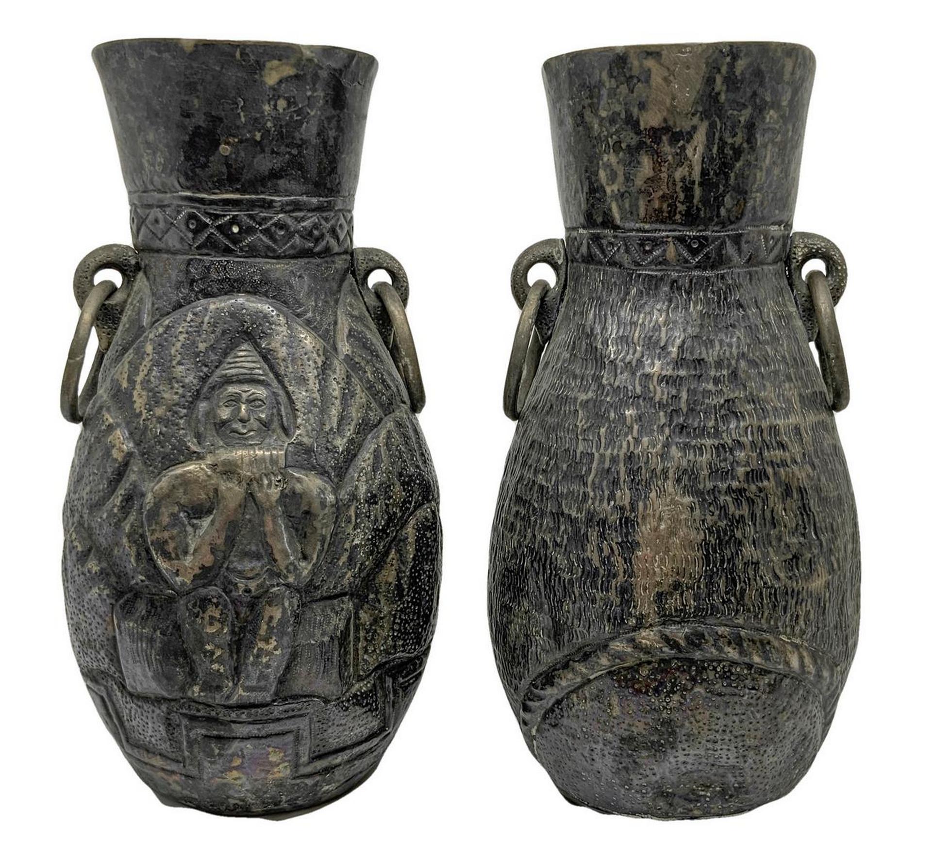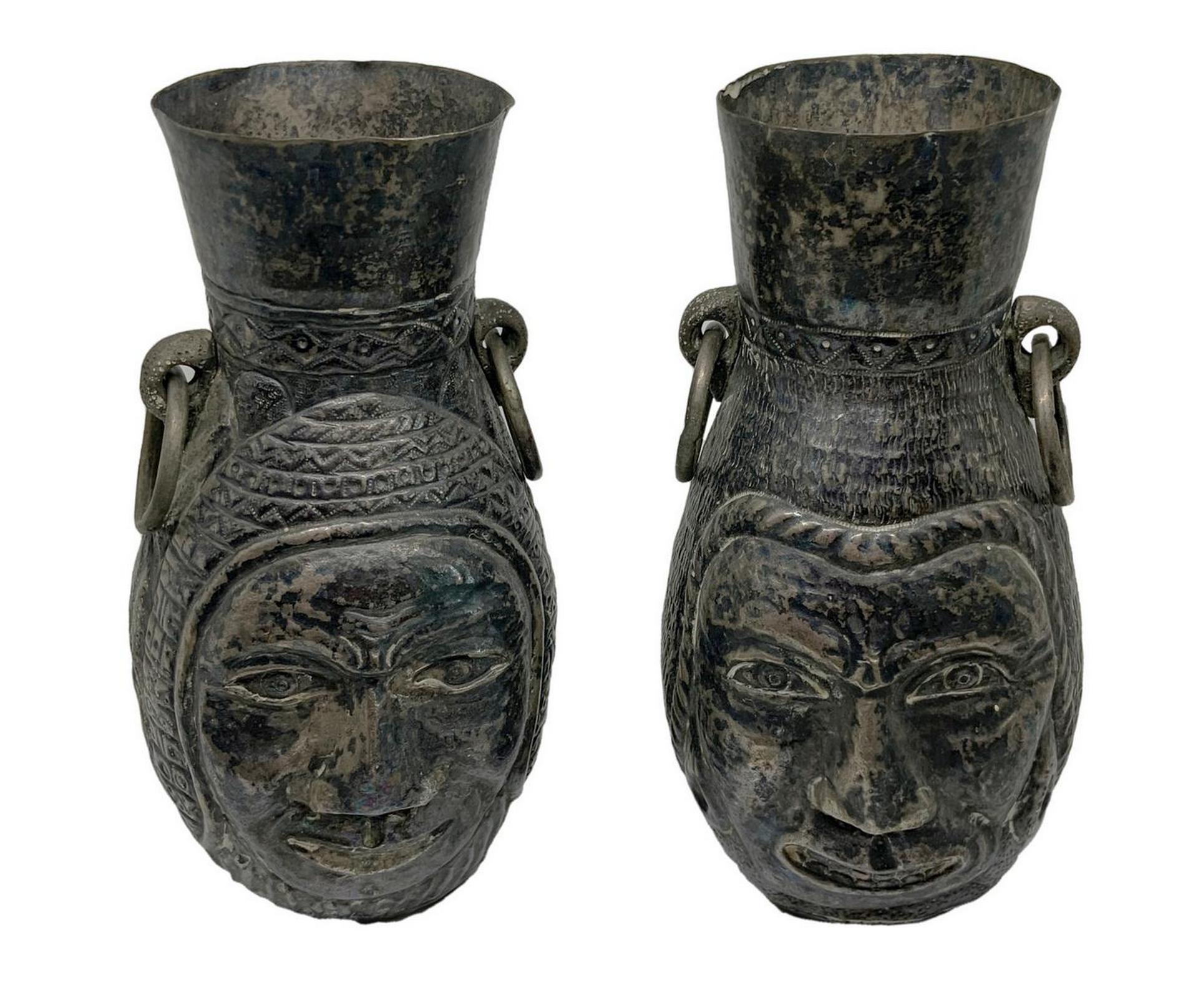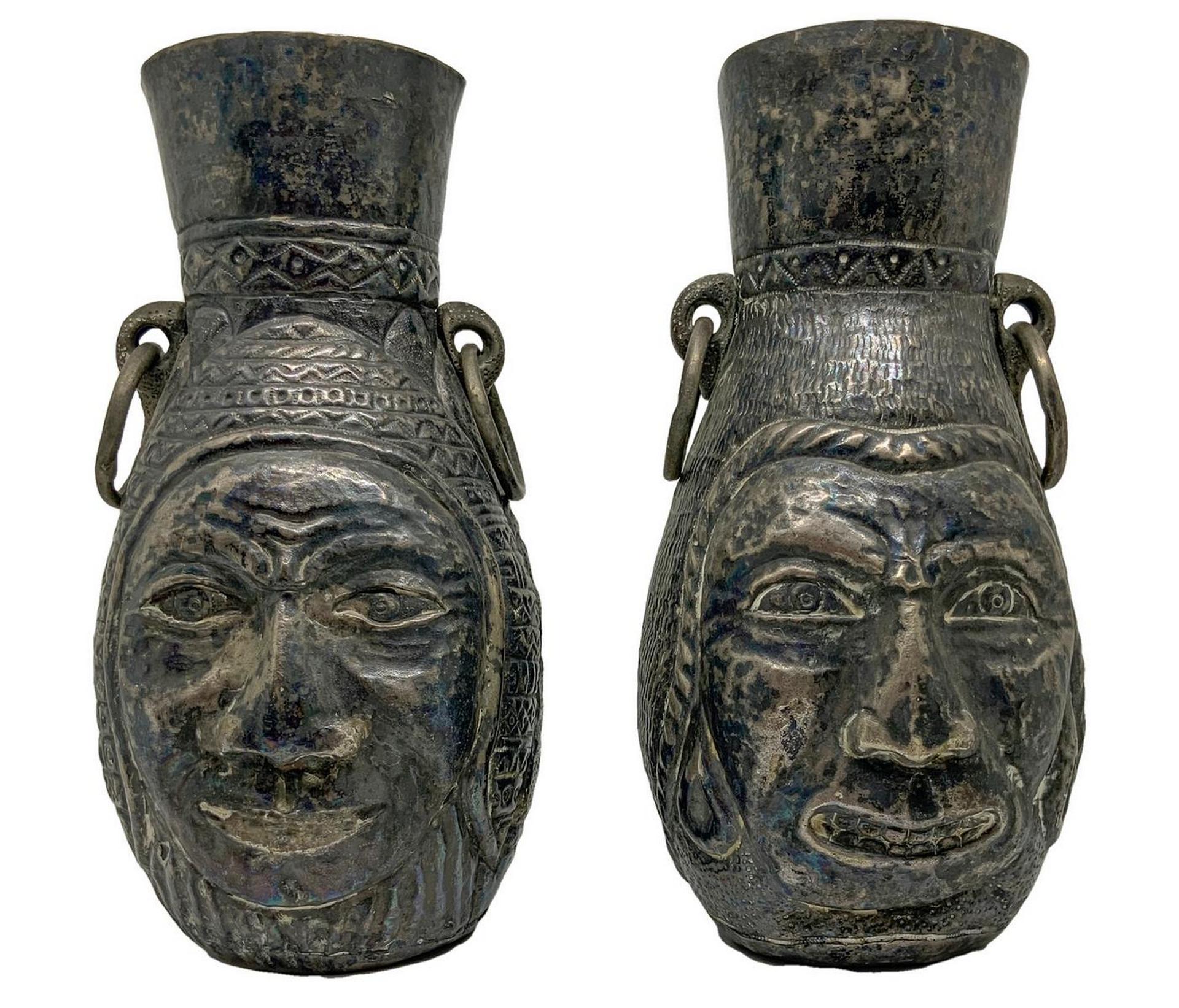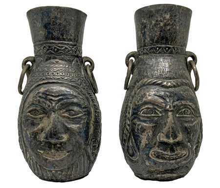 Coppia di brocche con volti disegnate, in bronzo, Lima Perù. H Cm 20,5