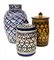 Gruppo di tre vasi, Tunisia. Due vasi con coperchio, H cm 15 e cm 20. Un vaso...
