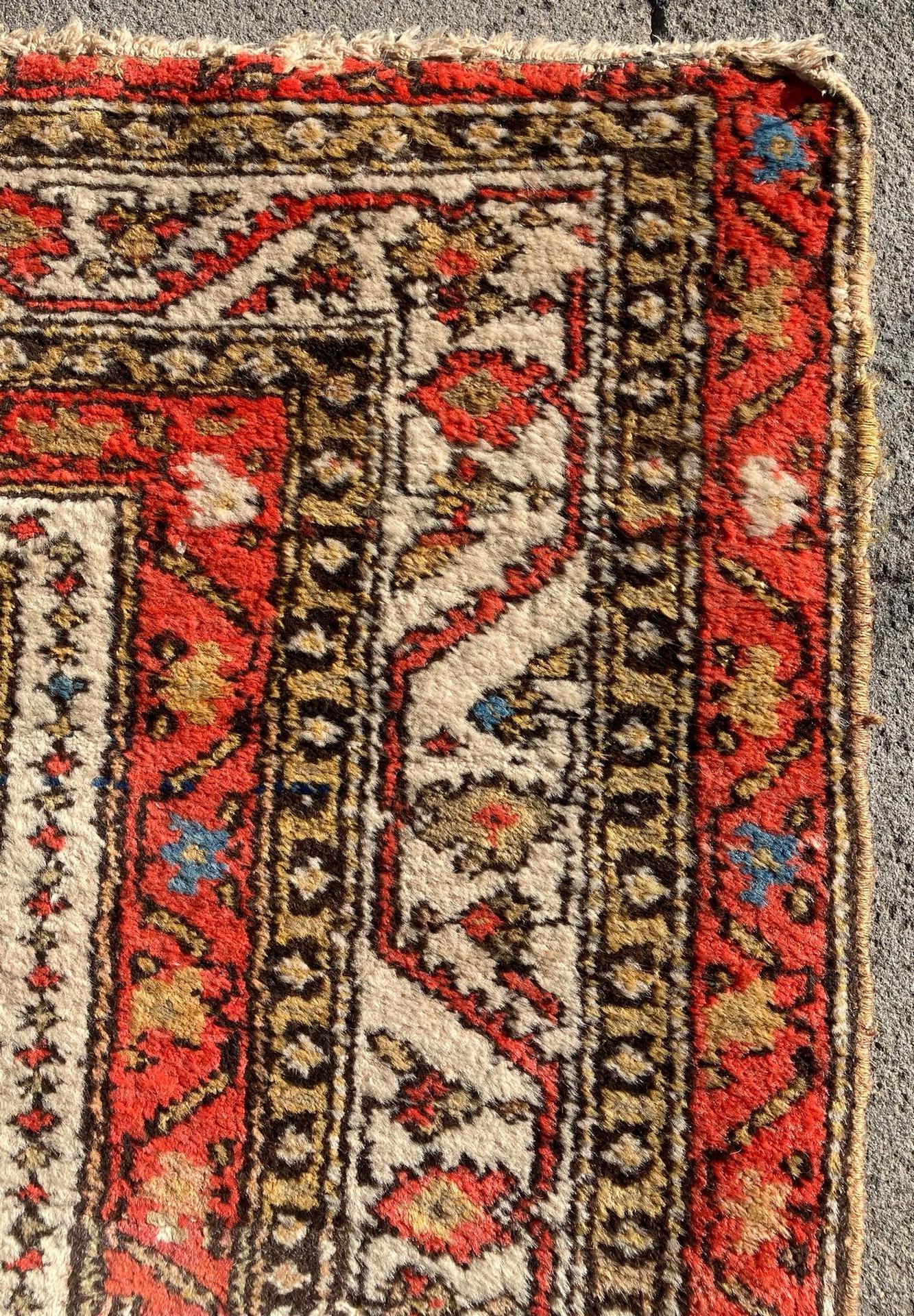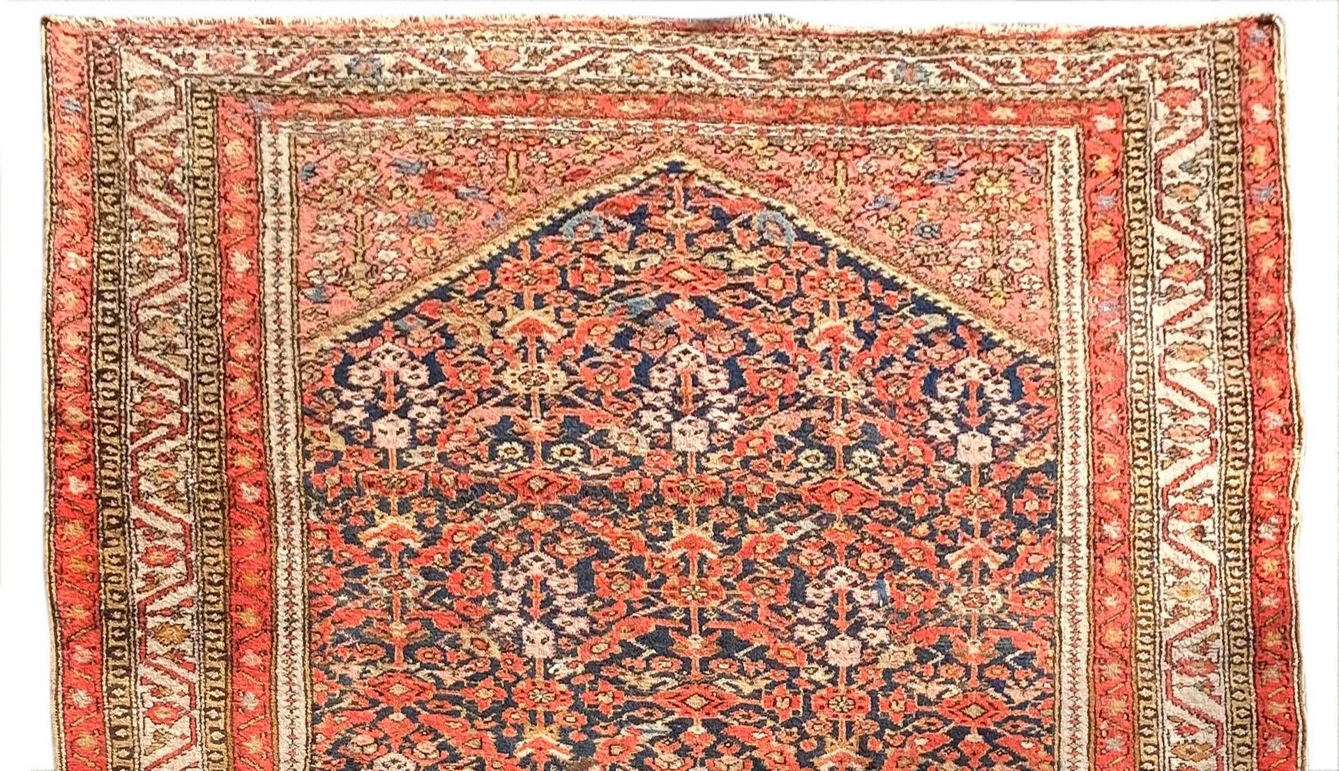 Tappeto Malayer, cm 400x195. Persia occidentale. Epoca 1940-50. Ordito e trama in cotone, vello e lana. Zone consunte.