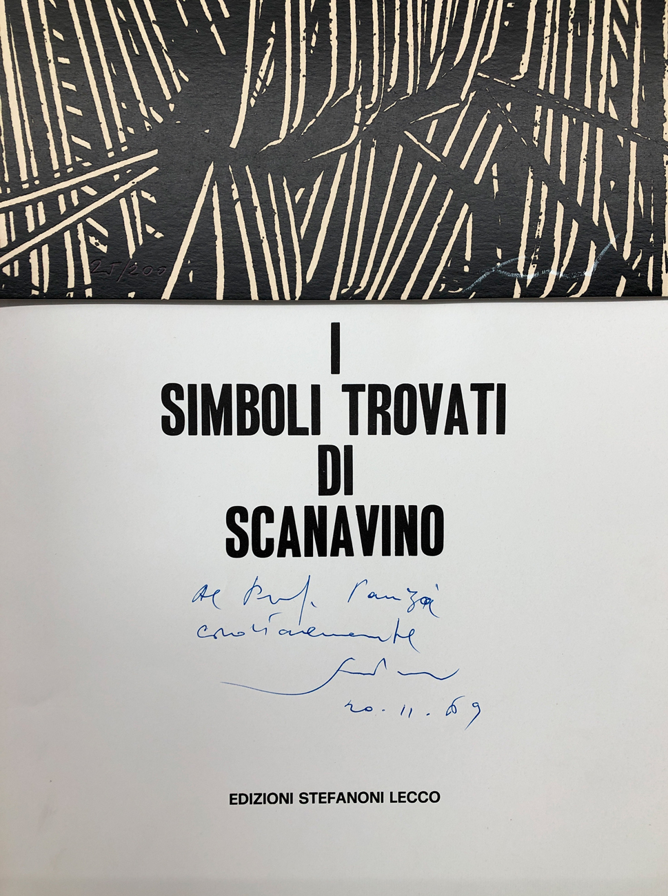 Catalogo riccamente illustrato contenente una serigrafia firmata e numerata (Esemplare 25/200) di Emilio Scanavino e dedica ad personam sulla quarta di copertina
