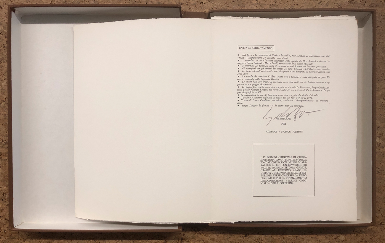 Colophon recante firma a matita dell’Artista (Esemplare ad personas)