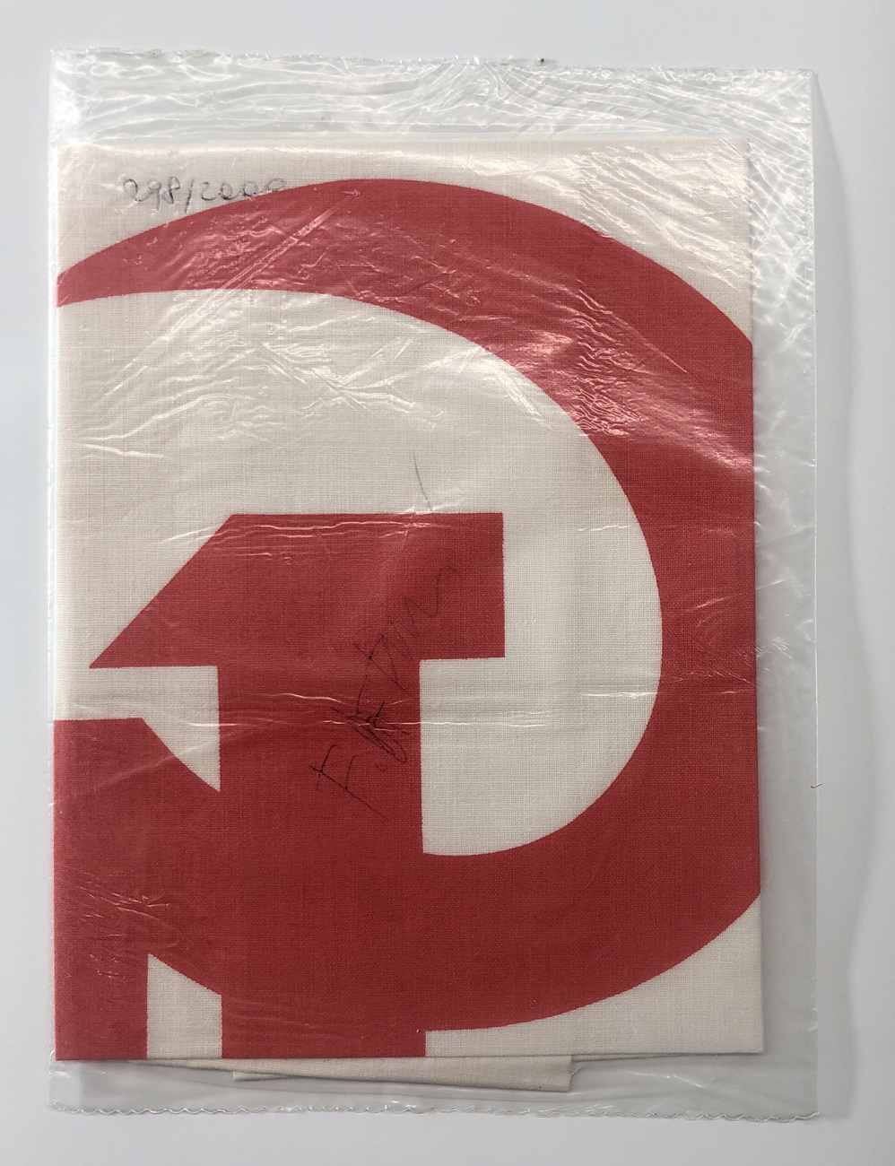 Il volume contiene all'interno un tessuto serigrafato entro busta di plastica recante firma e numerazione (Esemplare 0298/2000) e due cartoncini fustellati
