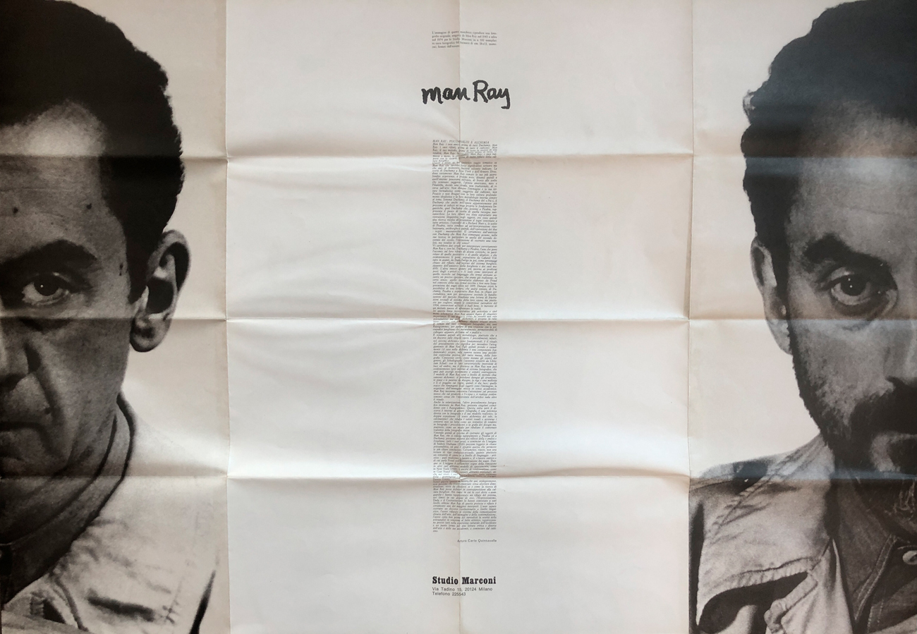L'immagine della locandina riproduce una fotografia originale di Man Ray del 1943, edita nel 1974 per Studio Marconi in 100 esemplari su carta fotografica di cm 18x13, numerati e firmati dall'autore