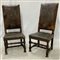 Coppia di antiche sedie con gambe a rocchetto, seduta e schienale rivestite in cuoio borchiato.(cm 51x115x45) (difetti e mancanze)