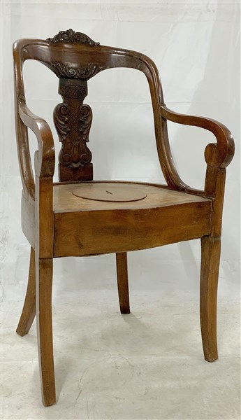 Comoda di forma mossa con schienale a giorno e cartella intagliata (difetti e mancanze)