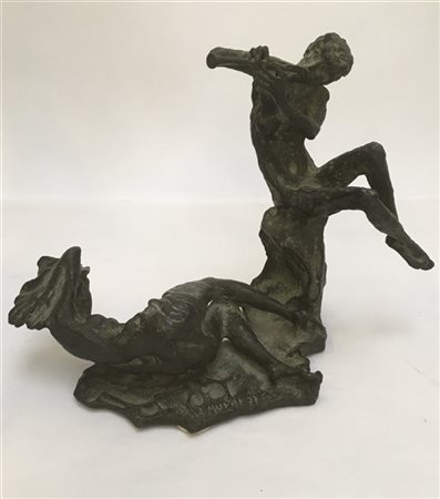 Augusto Murer "Fauno e ninfa" 1977 scultura in bronzo (cm 16x22x9) Firmata, data