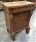 Comodino a tre cassetti lastronato montanti sagomati intagliati a motivi vegeta