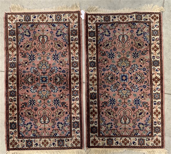 Lotto di due tappeti Sparta, Anatolia, secolo XX. Decoro floreale policromo su fondo rosa. (Lievi difetti) (Misure: cm 132x74; cm 130x73)