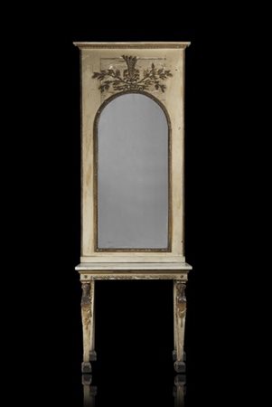 A 18th-century Lombard lacquered giltwood console table and pier mirror (console table cm 114x97,5x58; pier mirror cm 123x230) (defects and losses)