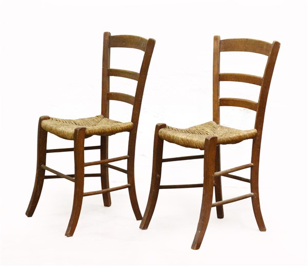 Coppia di sedie impagliate con schienale a giorno (difetti)