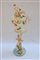 Manifattura inizio secolo XX. Vaso in ceramica su colonna decorato a rilievo e a tutto tondo a putti e fiori in policromia (h. cm 160) (difetti e restauri)
