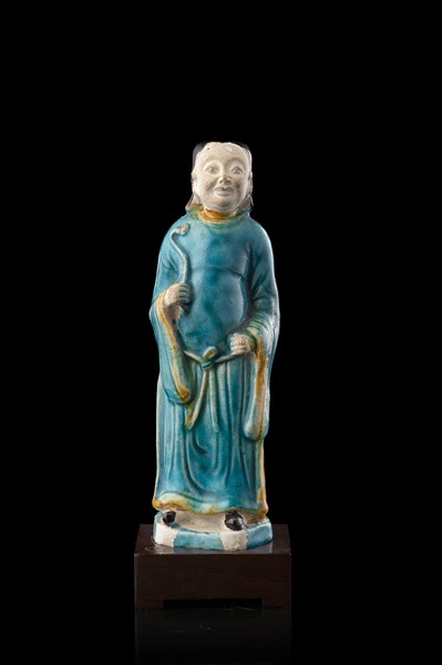 Lotto 761 | Scultura in ceramica, invetriatura a turchese raffigurante un dignitario reggen