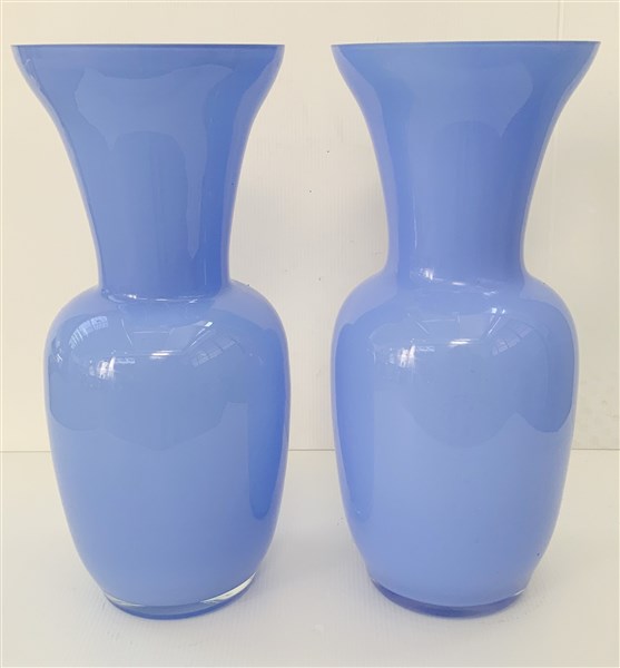 Lotto di due vasi a balaustro in vetro opaco azzurro (h cm 35)