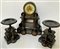 ANONIMO. Trittico da camino in marmo nero del Belgio di forma architettonica con decori ed inserti in metallo dorato e patinato formato da una pendola e due alzate poggianti su basamento. Ultimo quarto secolo XIX. Movimento con scappamento di Brocot a vista e pendolo compensato ad ampolle di mercurio. Quadrante a fascia con numeri romani. Misura h. cm 47 max. (Difetti e mancanze, lancette probabilmente sostituite)