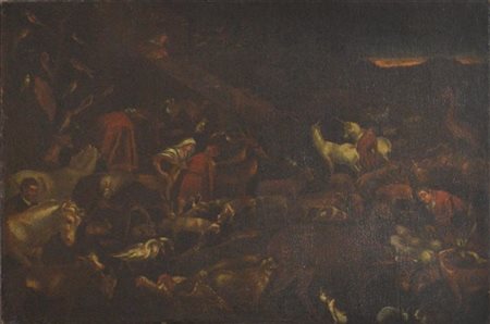 Scuola della fine del secolo XVII - inizio XVIII, da Leandro Bassano "L'arca di Noè" olio su tela (cm 74x109) (difetti e restauri)