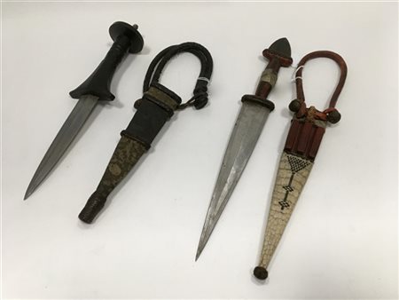 Lotto composto da due pugnali da braccio, uno con impugnatura rivestita di pell