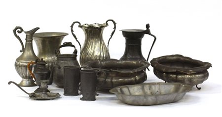 Cartone contenente numerosi oggetti in peltro (difetti)