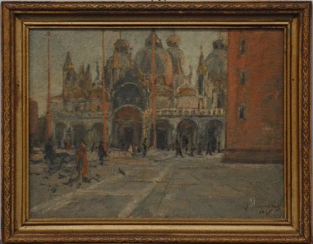 "Piazza san Marco, Venezia" olio su masonite (cm 30x40) Firmato e datato 1946 in basso a destra. In cornice