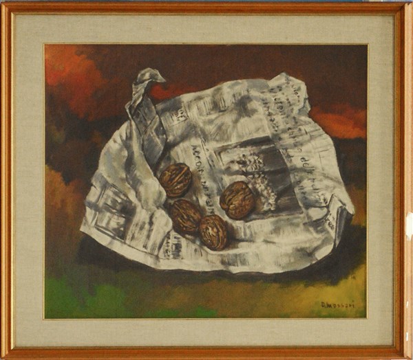 Antonio Massari "Noci e giornale" Natale '71, olio su tela (cm 60x70) Firmato in