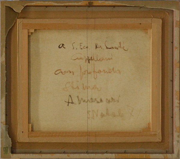 "Noci e giornale" Natale '71, olio su tela (cm 60x70) Firmato in basso a destra. Al retro:firmato, dedicato e datato. In cornice