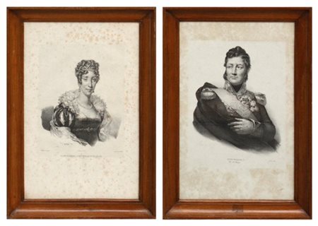 Coppia di incisioni raffiguranti il Re Luigi Filippo e la Duchessa d'Orleans. Francia, secondo quarto del secolo XIX. In cornice (cm 40x57 ) (lievi difetti)