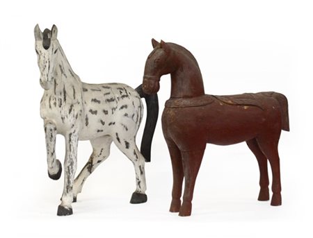 Due cavalli in legno policromo (difetti) inizio secolo XX(h. 76,5 cm.)