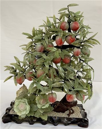 Grande albero di pesco in pietra dura, base in legno Cina, secolo XX (h.max 61
