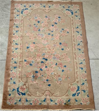 Tappeto Cina, secolo XX. Decoro floreale sparso con rami di pesco su fondo nocciola. (Difetti e macchie) (cm 240x152)