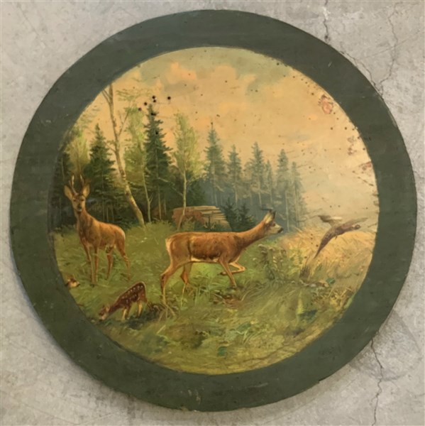 Bersaglio in legno raffigurante animali nel bosco (d cm 48) (difetti)