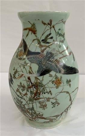 Vaso in porcellana celadon decorato con gru (difetti) Cina, secolo XX (h. 37,5